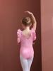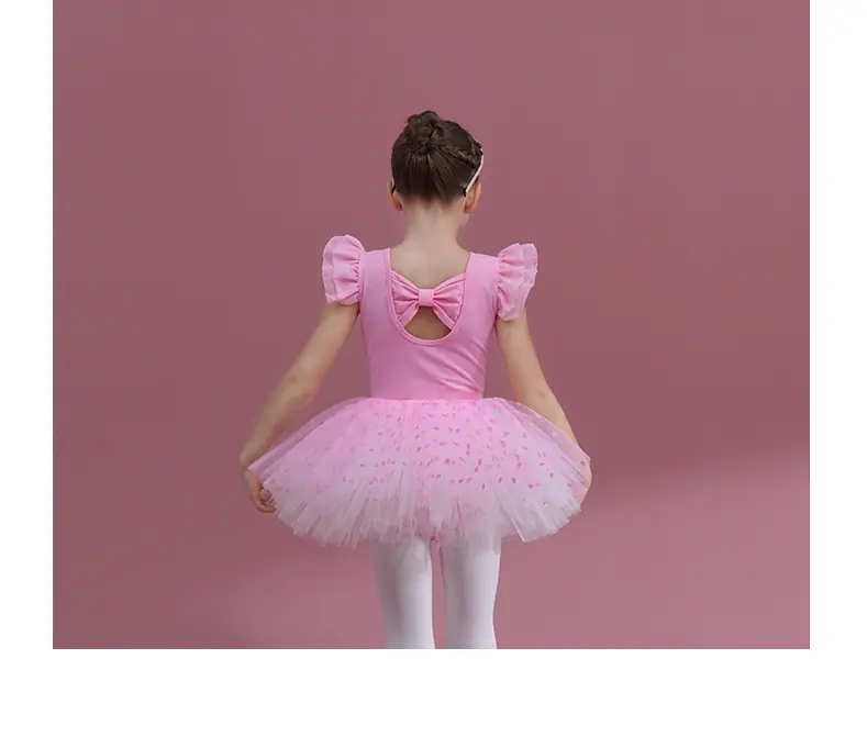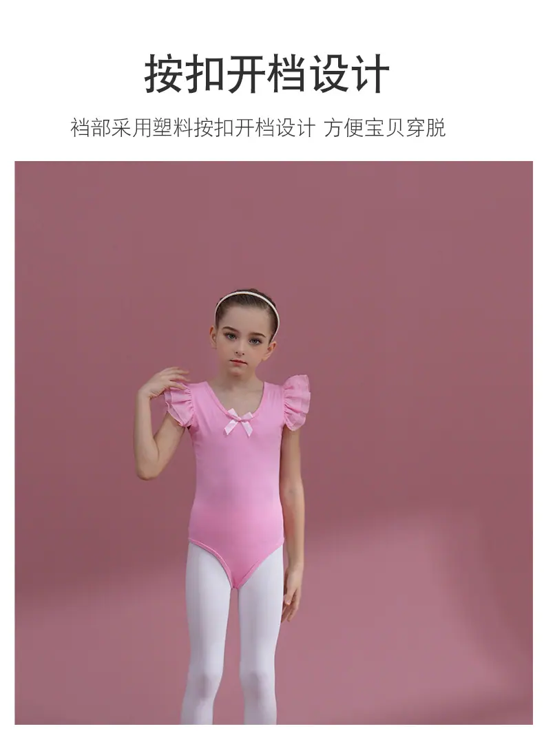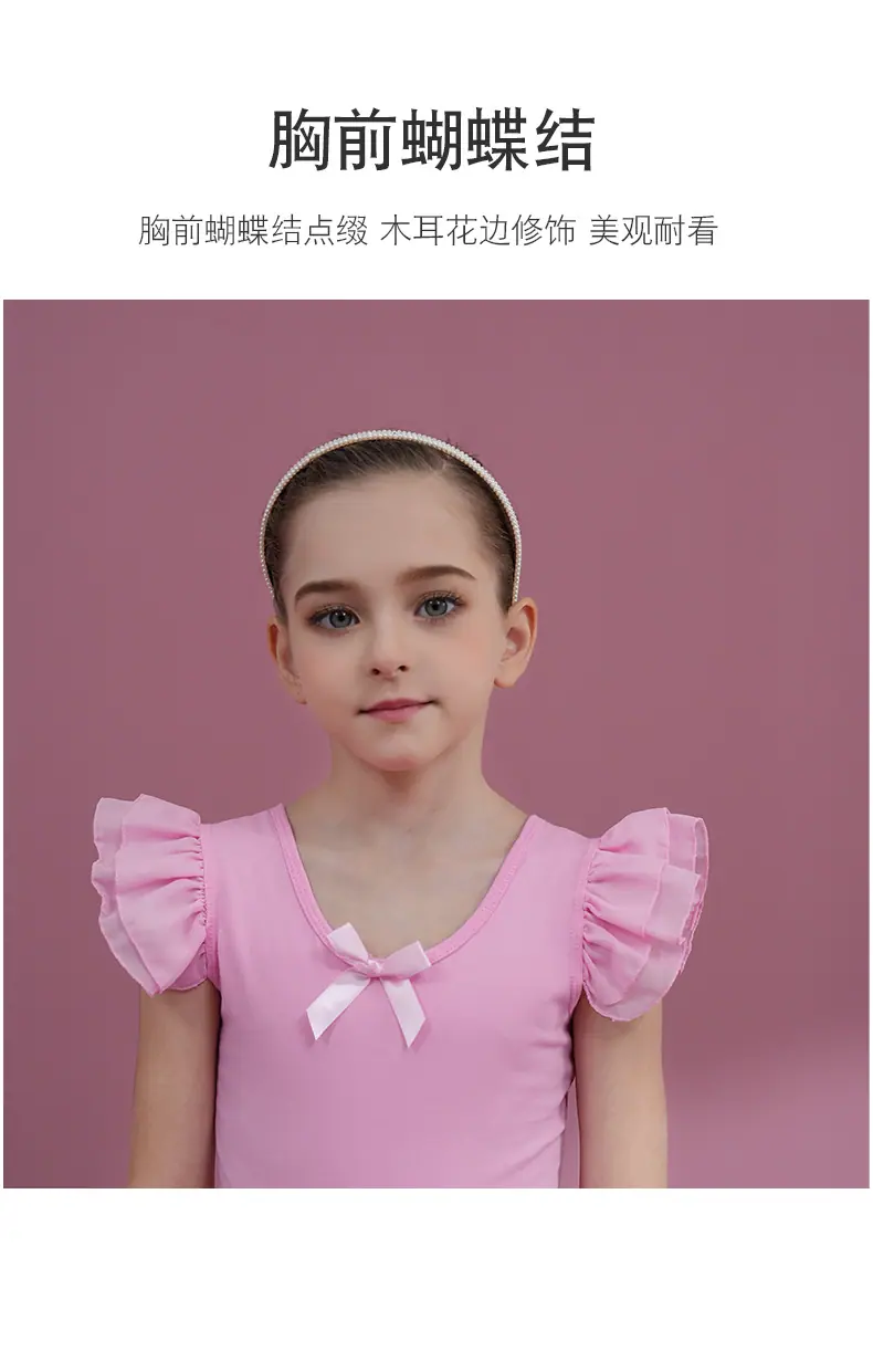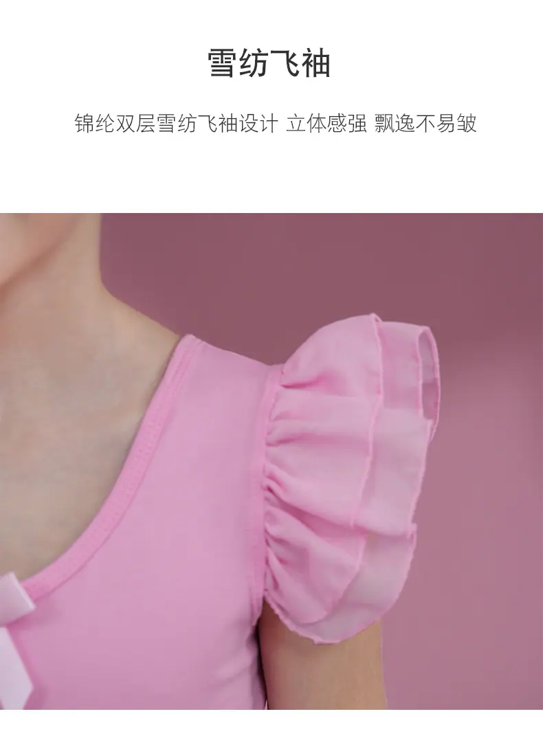 Ropa de Danza Infantil de Algodón Puro Verano Rosa Sin Mangas Ropa de Práctica para Niñas Ropa de Práctica de Danza China Vestido de Ballet Maillot