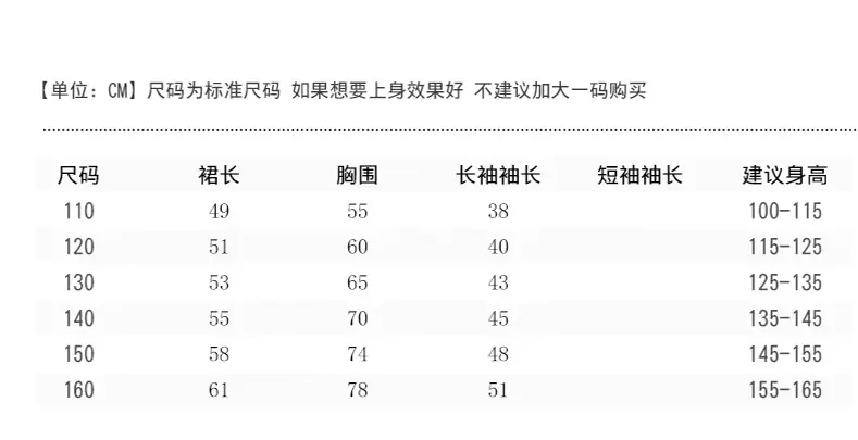 110cm, 120cm, 130cm, 140cm, 150cm, 160cm
