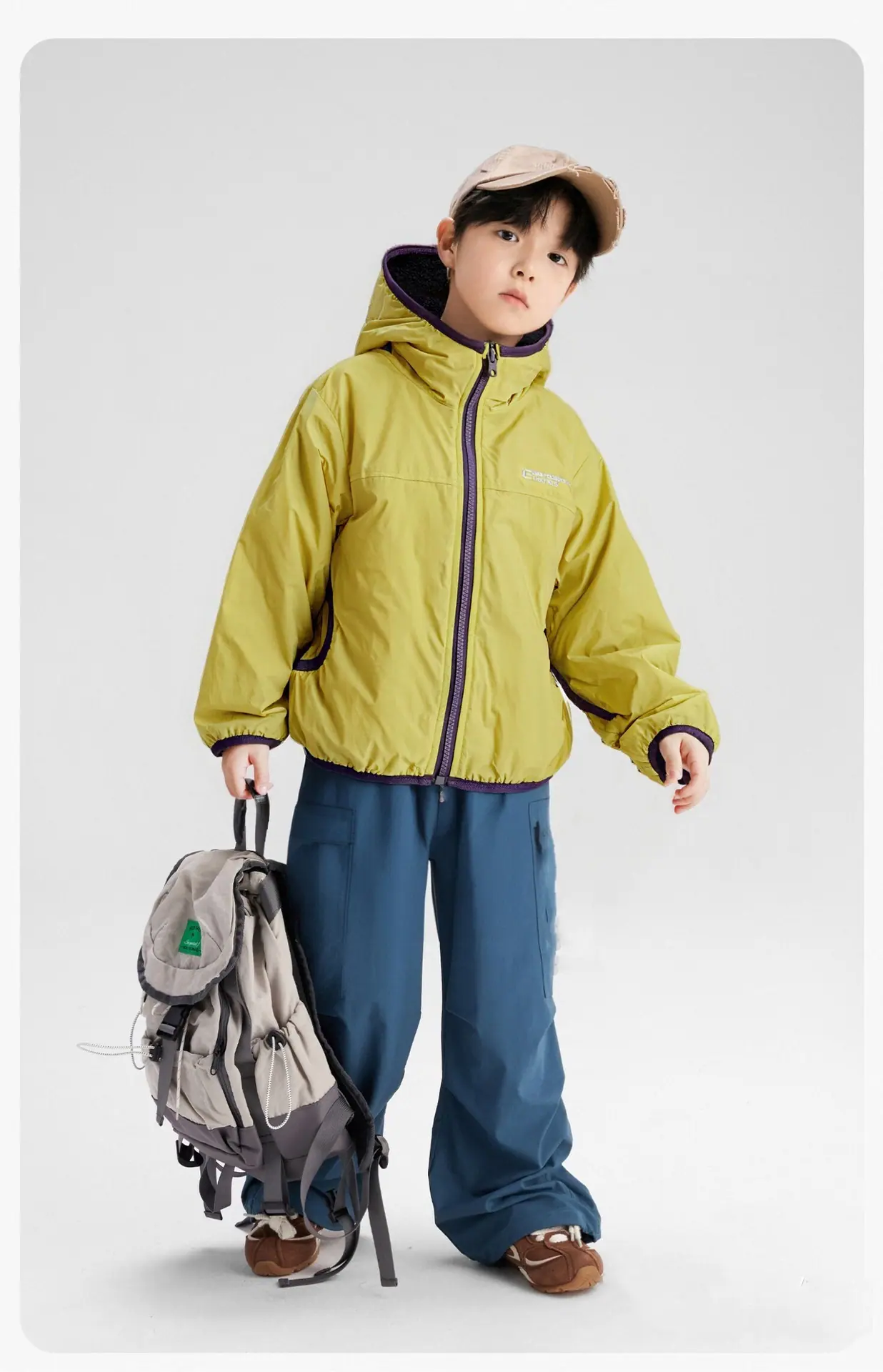 Chaqueta Estilo Camping para Niñas Otoño 2025 Chaqueta Reversible de Montaña para Niños con Bloque de Color Sistema para Montaña Chaqueta de Punto con Capucha para Niño Pequeño