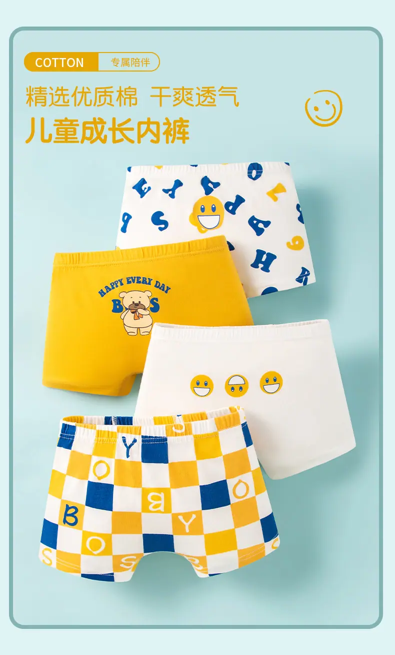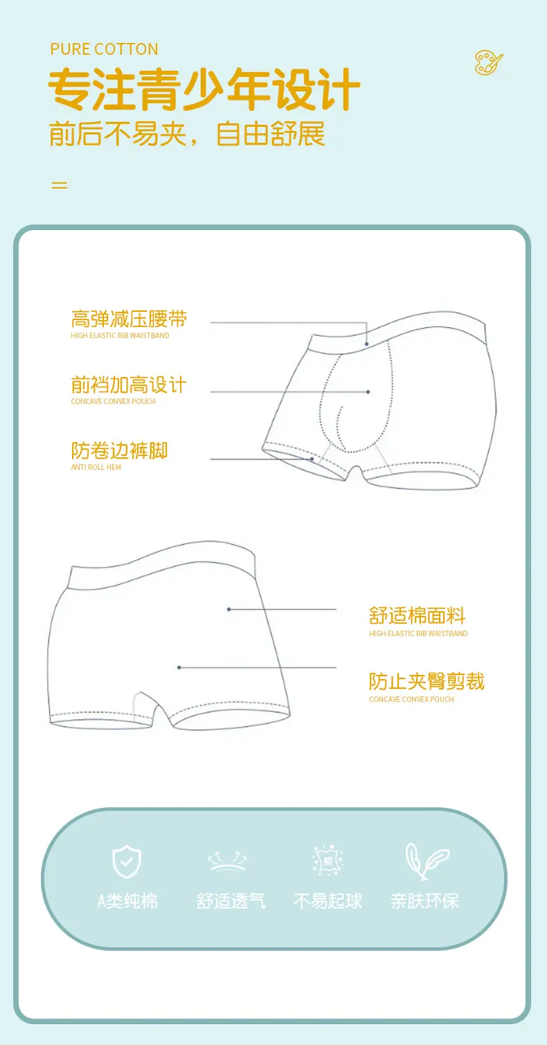 Boxers para niño Clase A Algodón puro Shorts de cuatro esquinas Adolescentes Estudiantes de secundaria Ropa interior No se sube Venta al por mayor