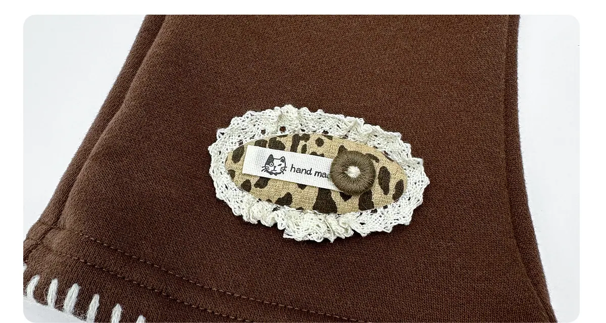 Double-sided vest, Embroidered High Neck Sweater, Lace Flare Pants (Fleece)