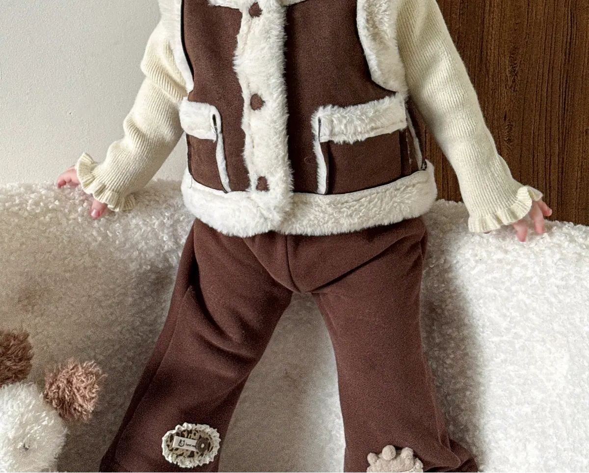 Ropa para Niños Zhe Li Chaleco de Gamuza para Niñas Ropa de Invierno 2025 Nuevo Estilo Estilo Extranjero Top Reversible para Niños Ropa para Bebé