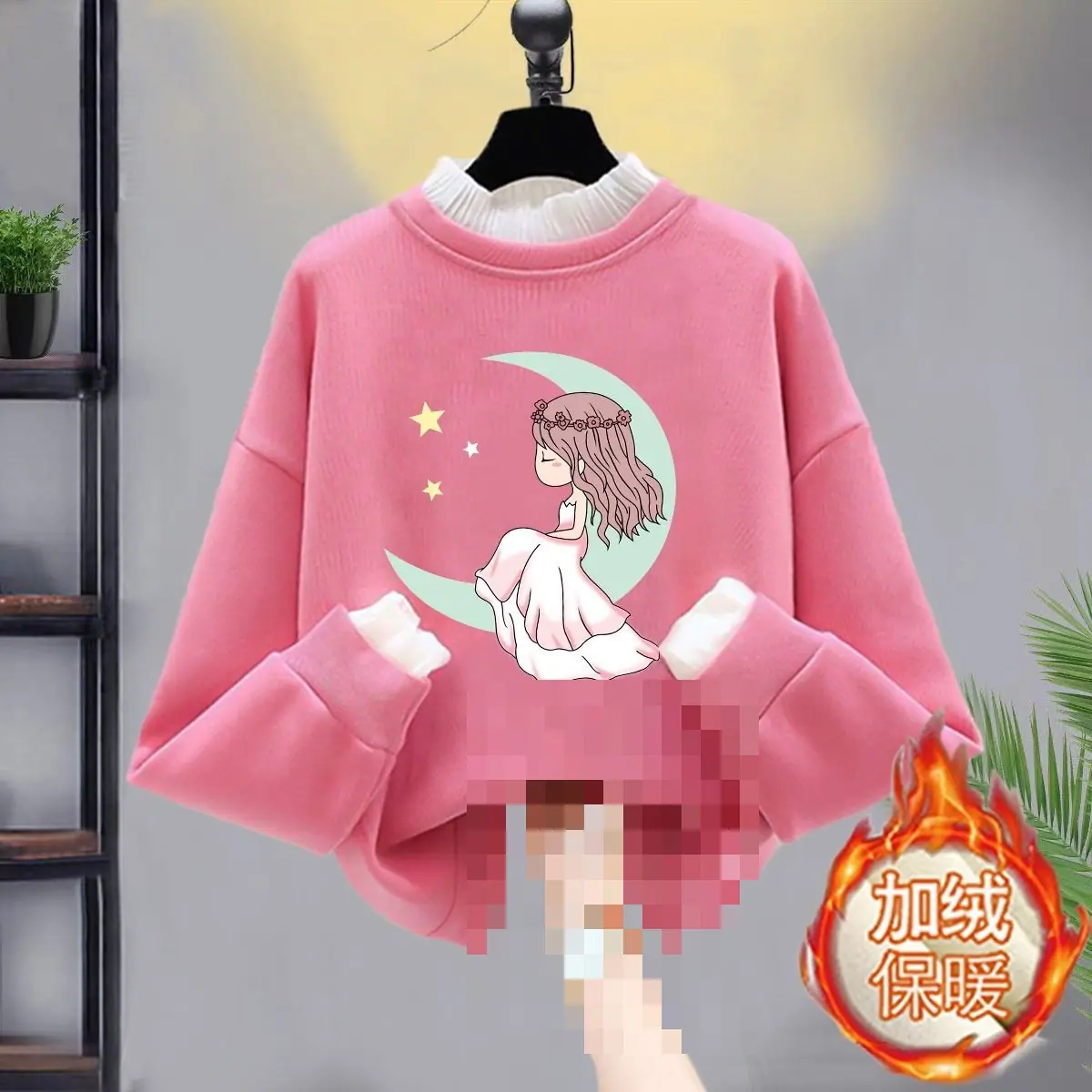 Top Patchwork para Niñas Grueso Cálido a la Moda 12 Años Otoño/Invierno 2025 Mediano/Grande Niños 14 Sudadera Elegante Forrada de Felpa Nuevo