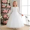 Fábrica al por mayor Vestido Falda Infantil Niñas Dama de Honor Manga Larga Encaje Malla Hueca Falda Tutú Vestido Falda Larga Blanca
