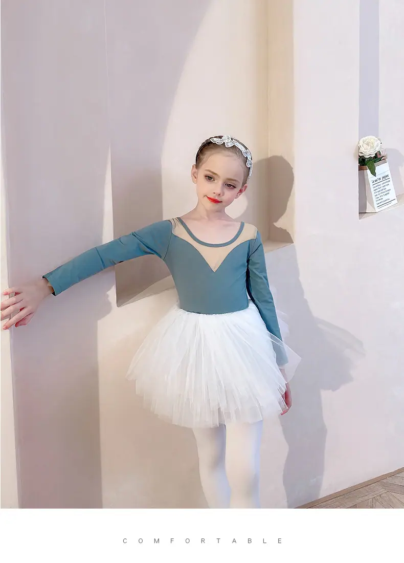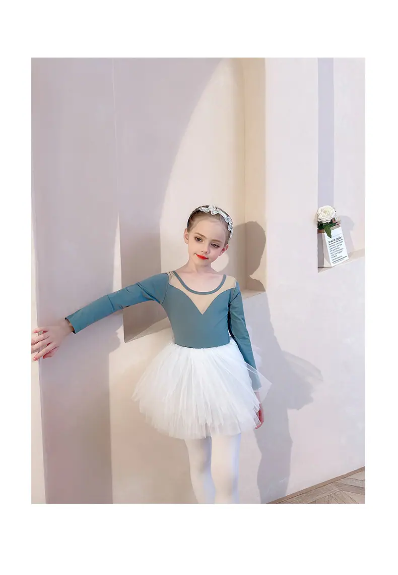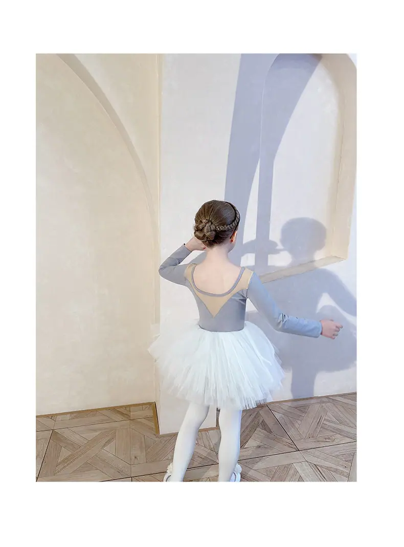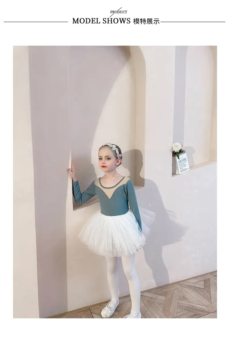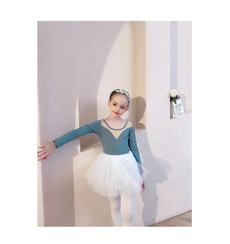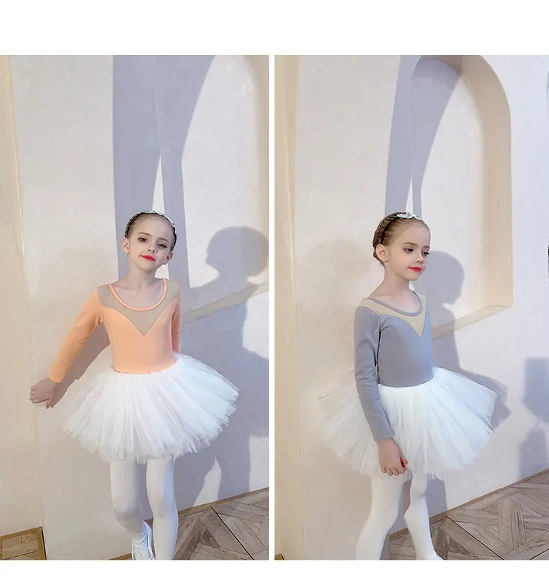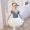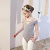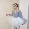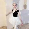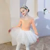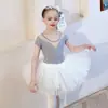 Ropa de baile infantil de verano de manga corta para niñas, conjunto de ropa de práctica, falda blanca a media pierna, falda de tul, vestido de ballet para niña pequeña