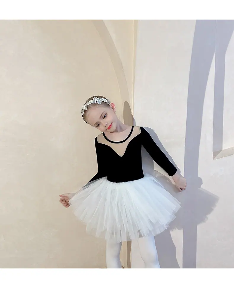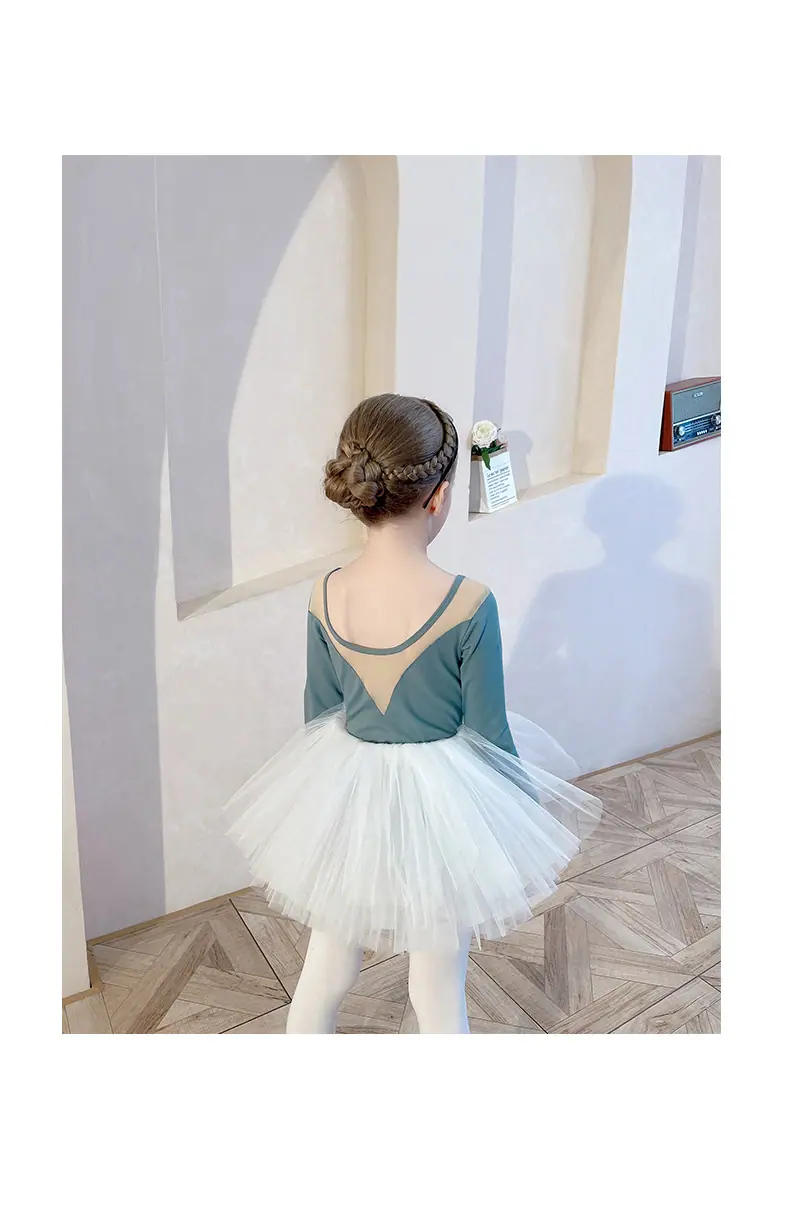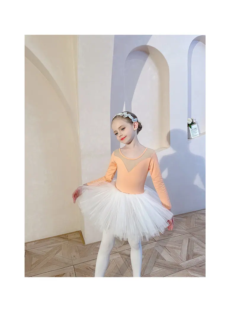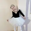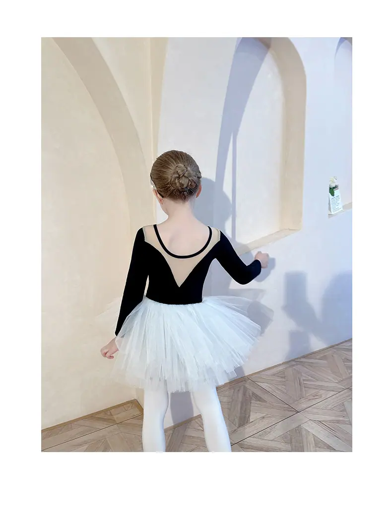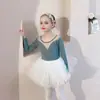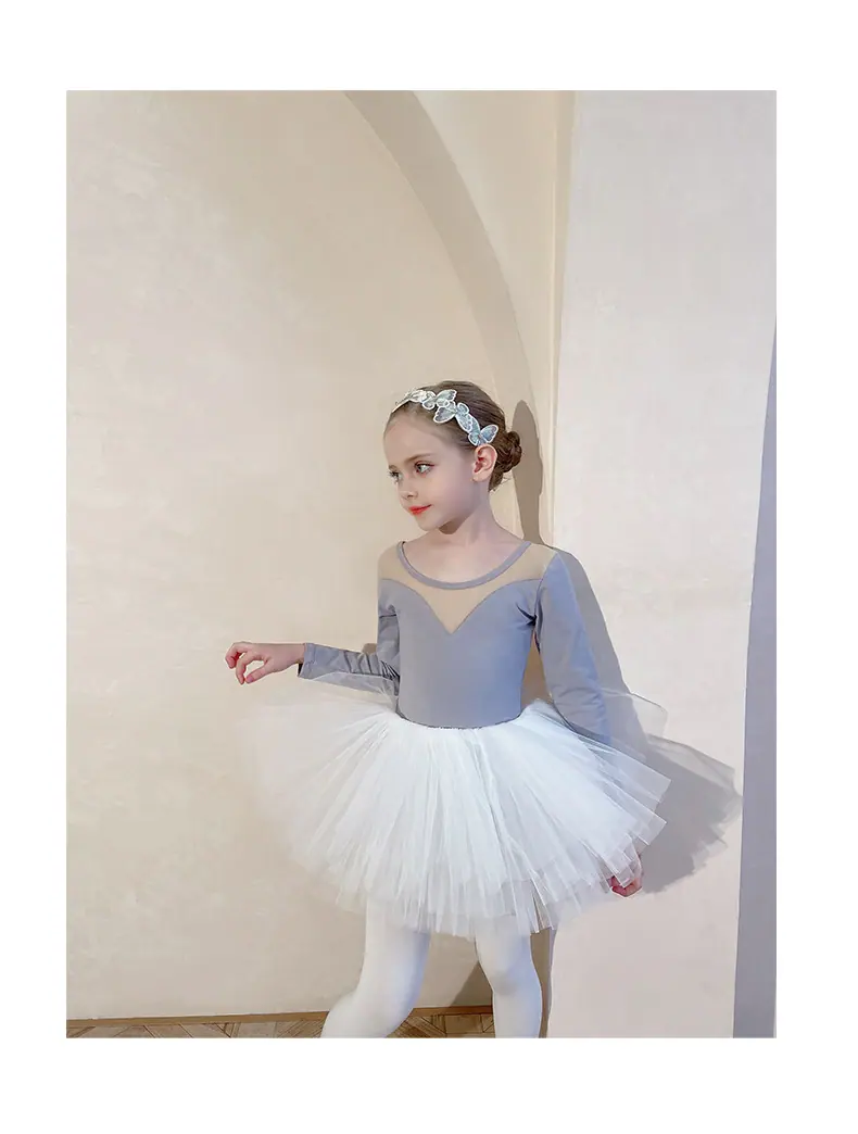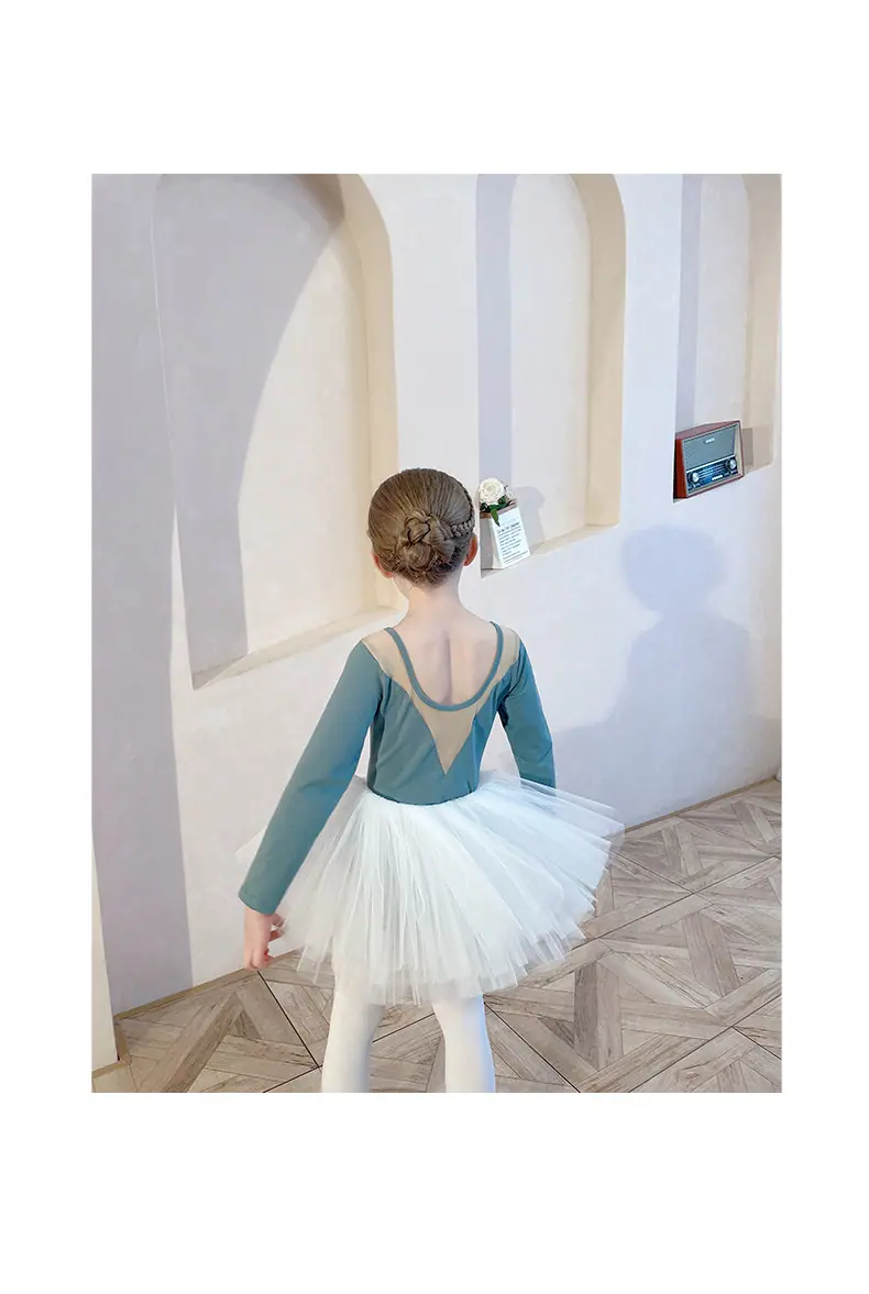 Ropa de baile infantil de verano de manga corta para niñas, conjunto de ropa de práctica, falda blanca a media pierna, falda de tul, vestido de ballet para niña pequeña