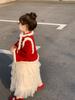 Ropa infantil de estilo coreano 2023 nuevo otoño e invierno traje de estilo nacional para niñas rojo nuevo estilo chino hebilla pespuntes chaleco vestido
