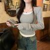 Conjunto de dos piezas falsas con costuras Estilo coreano Ajustado Top corto para mujer Color en contraste Interior de manga larga Cálido Top base Otoño e Invierno