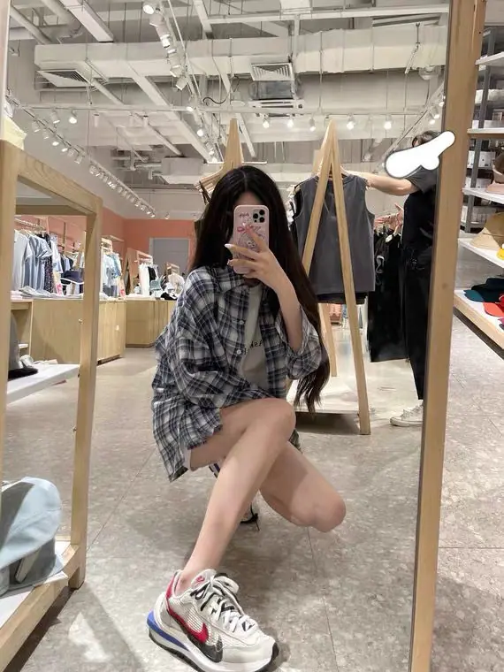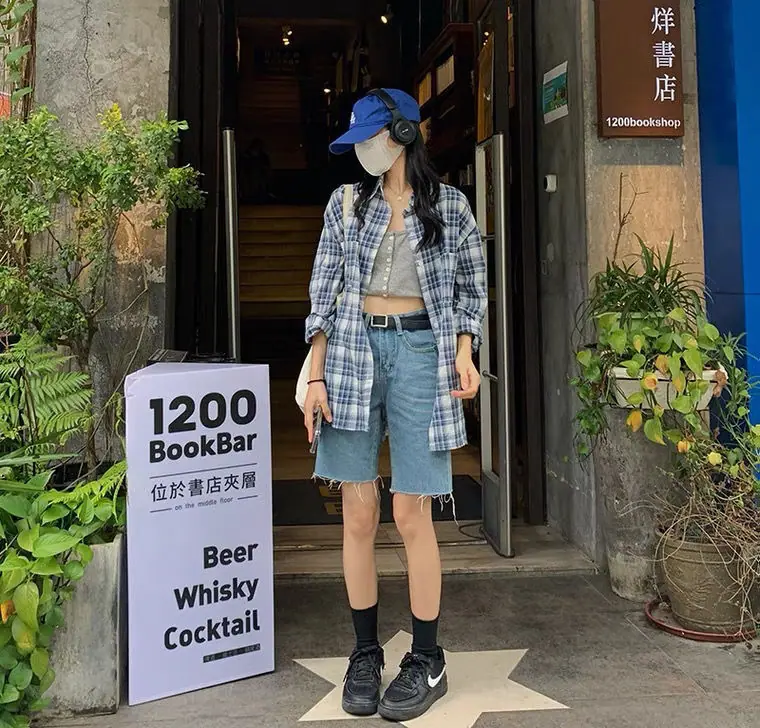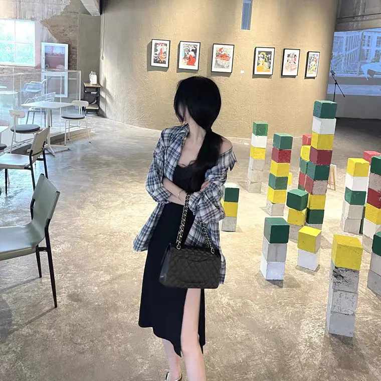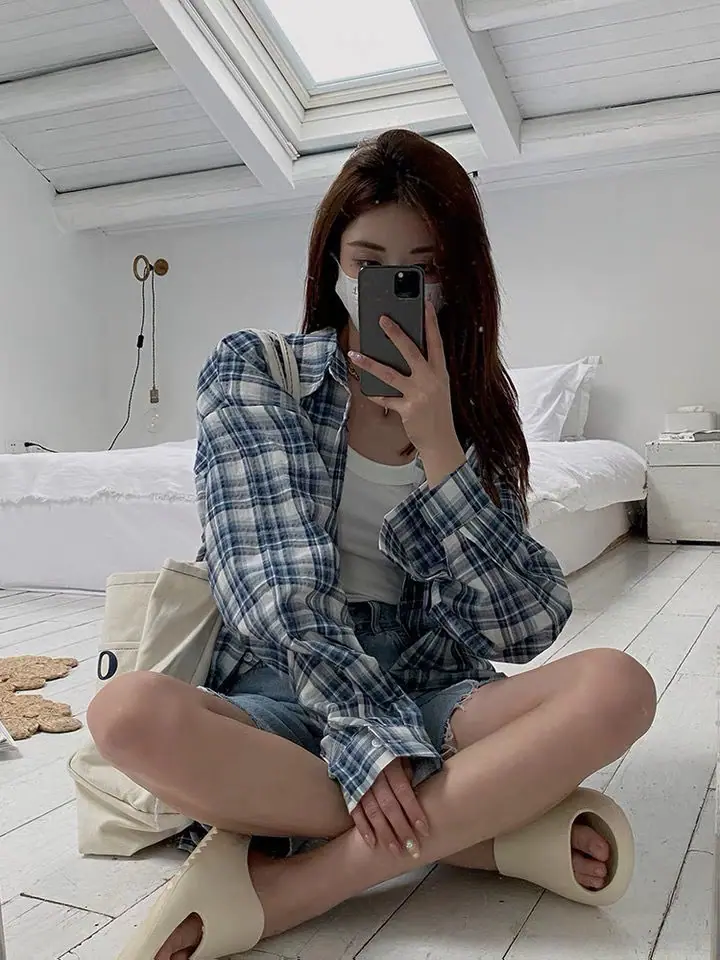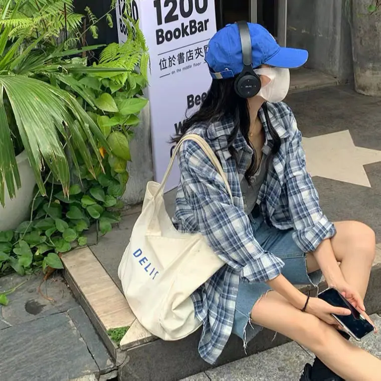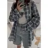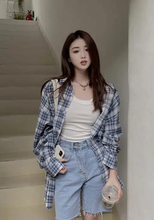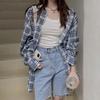 Camisa a cuadros azul y blanco de primavera y otoño para mujer, abrigo de estilo coreano, diseño holgado, top de nicho, camisa de manga larga de celebridad de internet