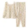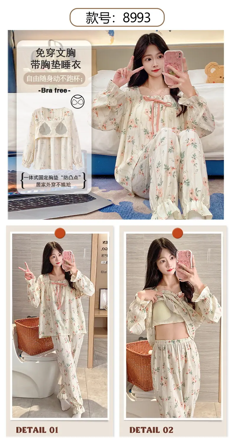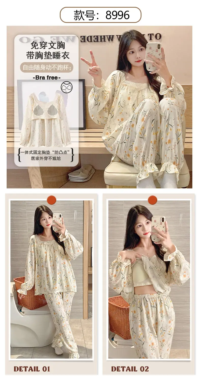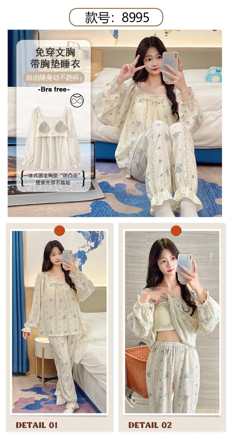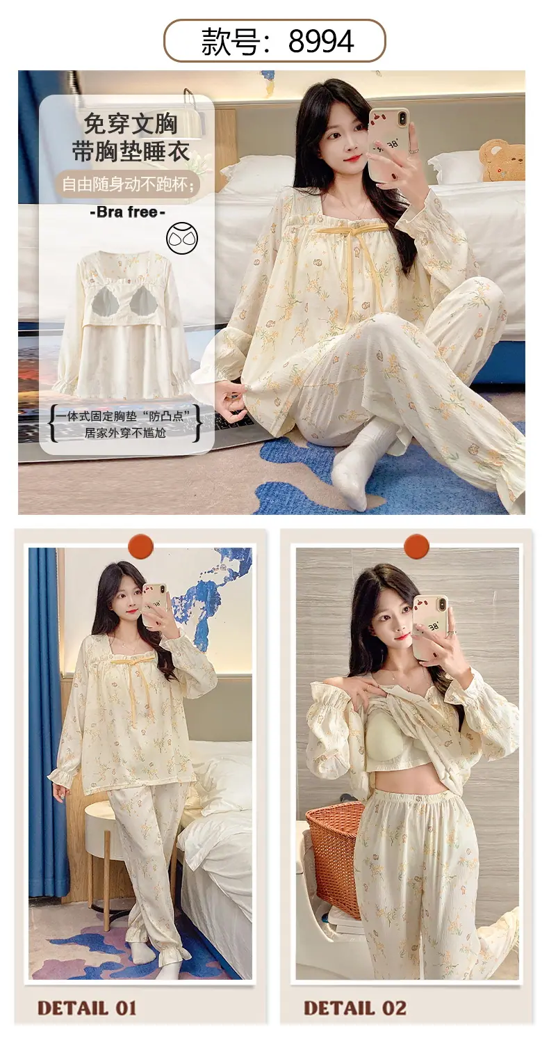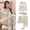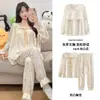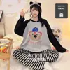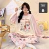Pijama de Mujer Estilo Coreano con Almohadilla en el Pecho Algodón Imitación Manga Larga Otoño e Invierno Lindo Dibujo Animado Casual Conjunto para Estar en Casa Se Puede Usar Afuera