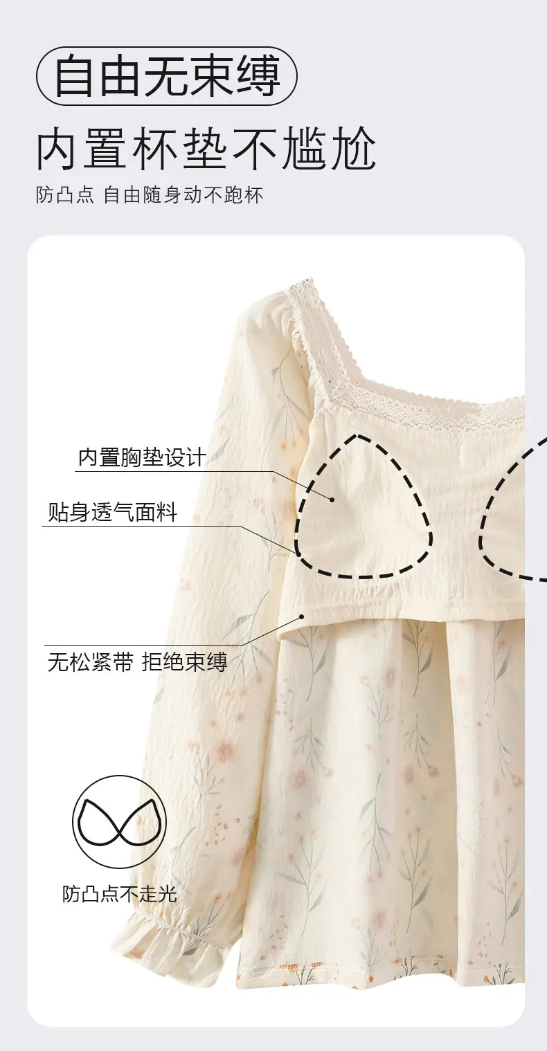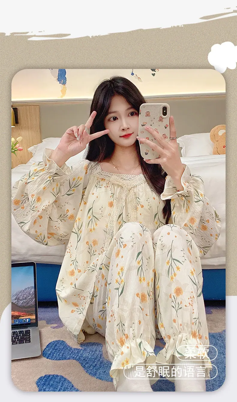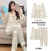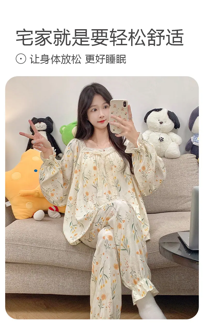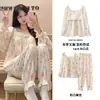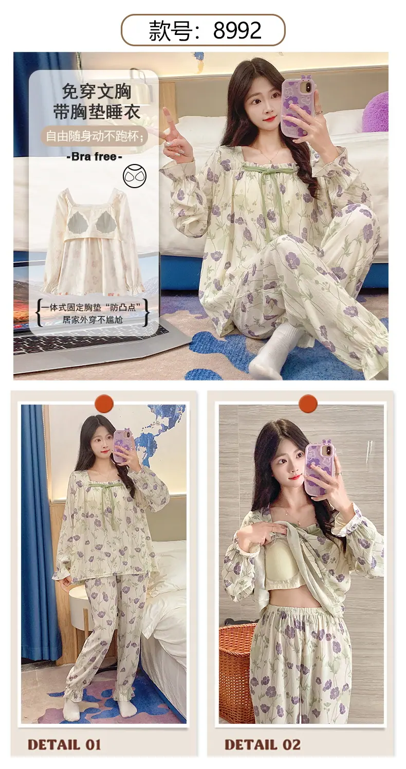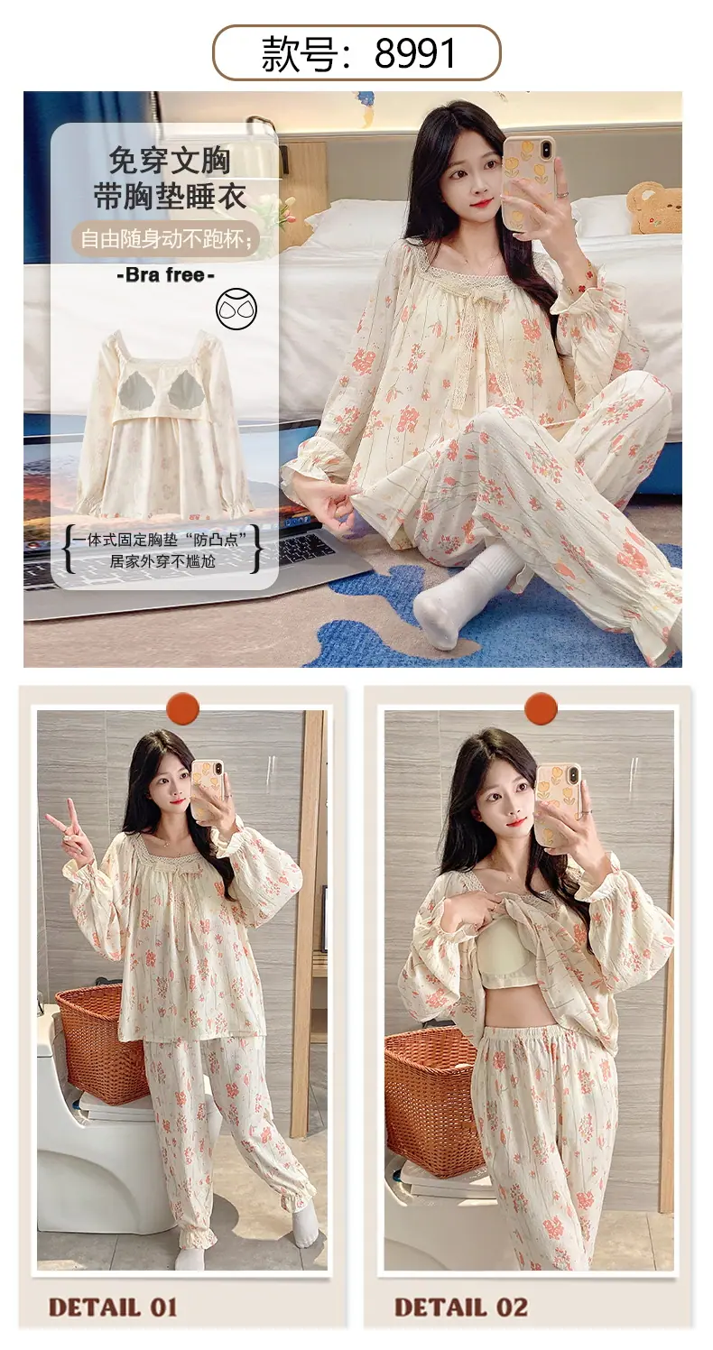 Pijama de Mujer Estilo Coreano con Almohadilla en el Pecho Algodón Imitación Manga Larga Otoño e Invierno Lindo Dibujo Animado Casual Conjunto para Estar en Casa Se Puede Usar Afuera