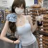 Comercio Exterior Transfronterizo Popular Encaje Tirantes Verano Mujer Ropa Interior y Exterior Blanco Puro Lustroso Sexy Ajustado Chaleco