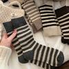 Calcetines Calcetines de Invierno de Lana para Mujer Calcetines Cálidos Gruesos de Media Caña Calcetines de Mujer de Estilo Coreano con Rayas Onduladas Calcetines Suaves Cerosos Casuales Apilados