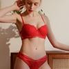 Encaje Bordado Francés Hermoso Sujetador de Espalda Pecho Pequeño Push-up Anticaída Set de Ropa Interior Sexy Rojo