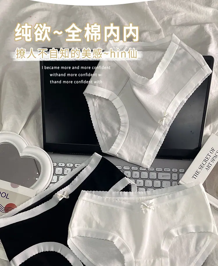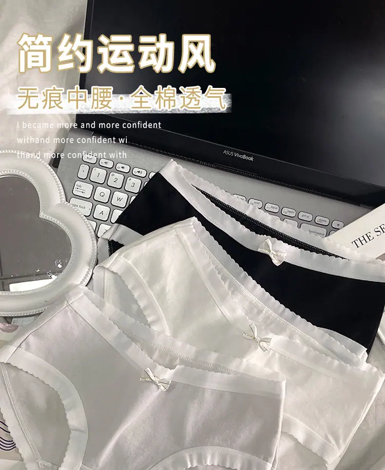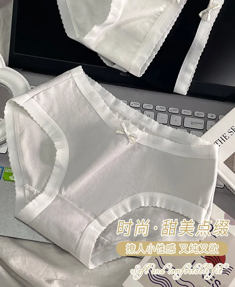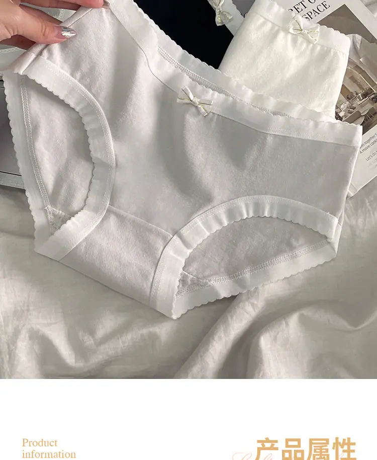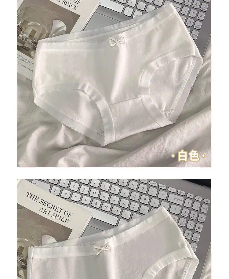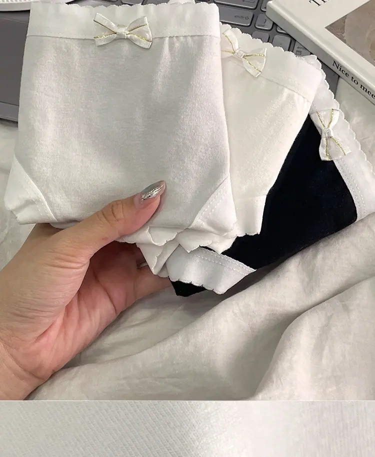 Braguitas de Algodón Puro para Niñas Lazo Cintura Media Estilo Coreano Estilo Japonés Braguitas Triángulo Dulces Ropa Interior Transpirable para Mujer Sencillas Nuevas
