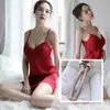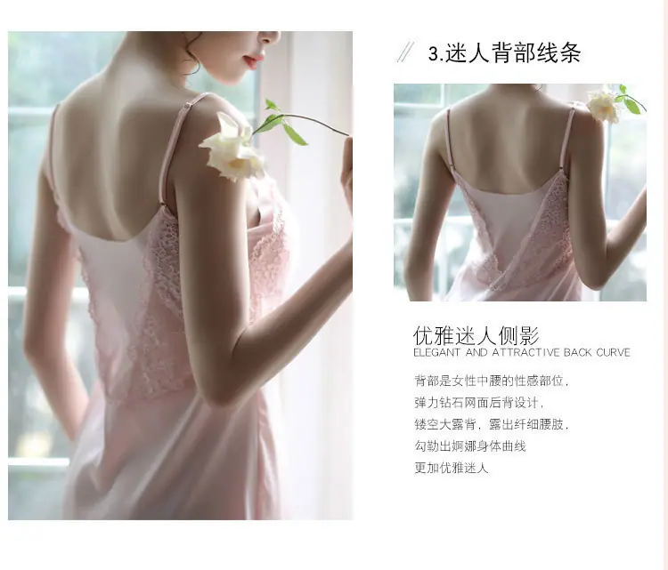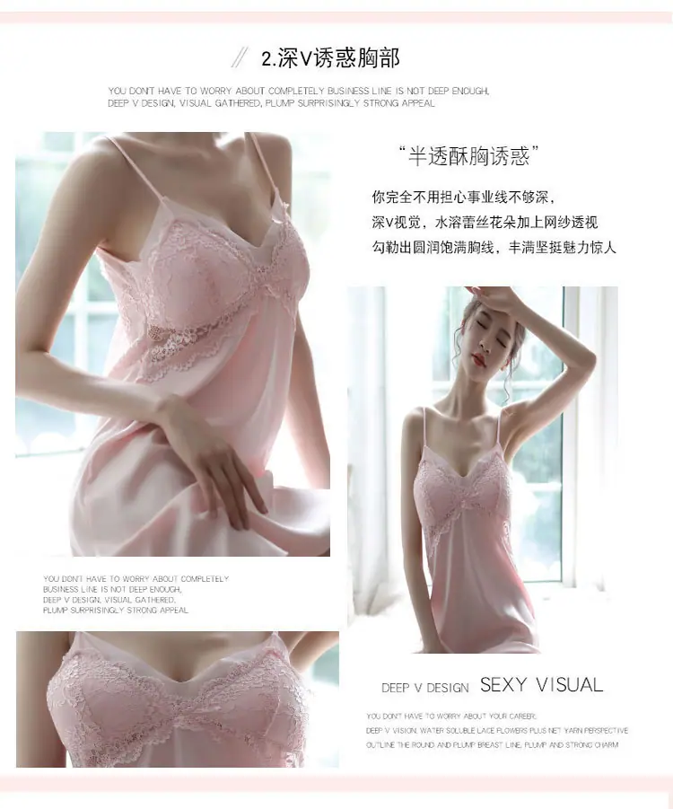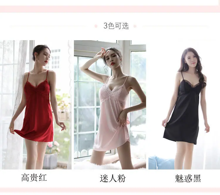 Lencería Sexy con Almohadillas para el Busto, Camisón de Tirantes de Seda de Hielo, Pijama Fino de Encaje sin Espalda para Verano para Mujer, Puro Deseo Talla Grande