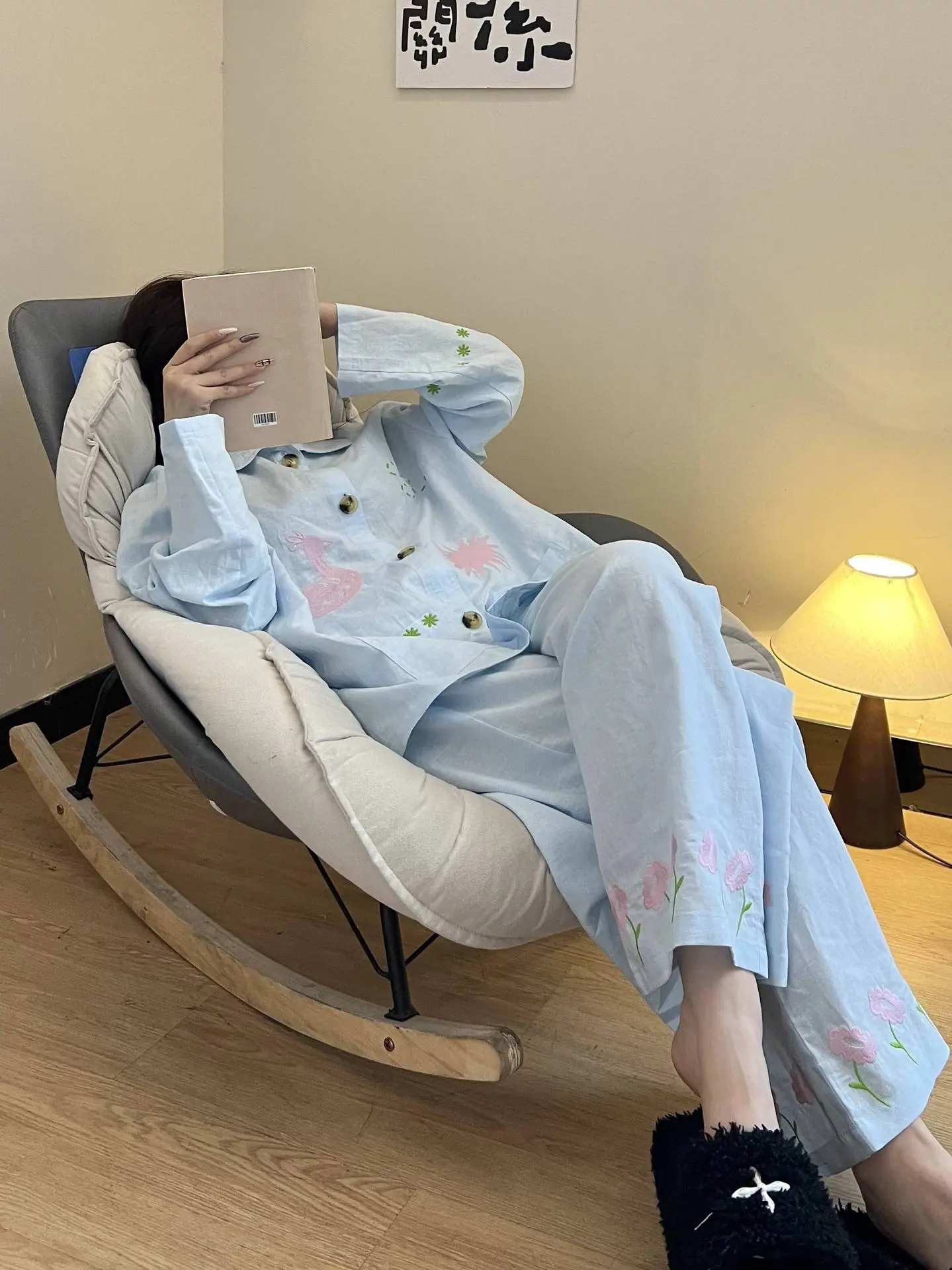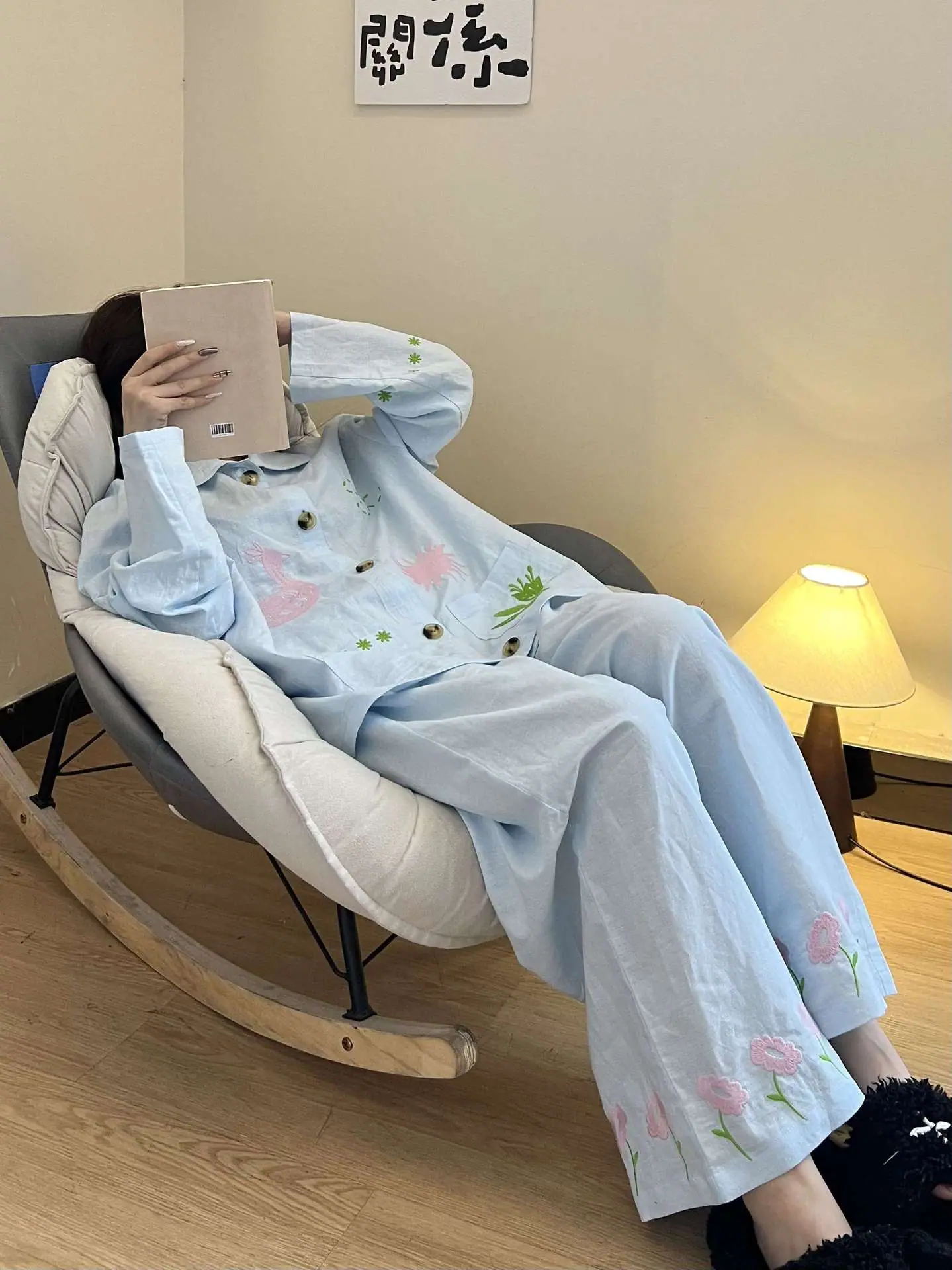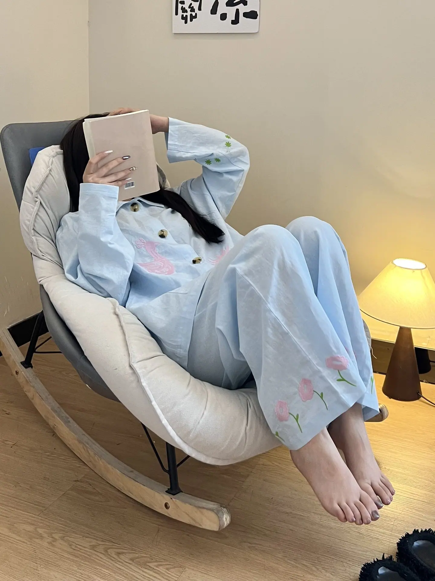 Pijama Sencillo Dulce y Encantador para Niña Otoño Nuevo Manga Larga Pantalón Largo Holgado Se Puede Usar Fuera Conjunto Ropa para el Hogar Tendencia