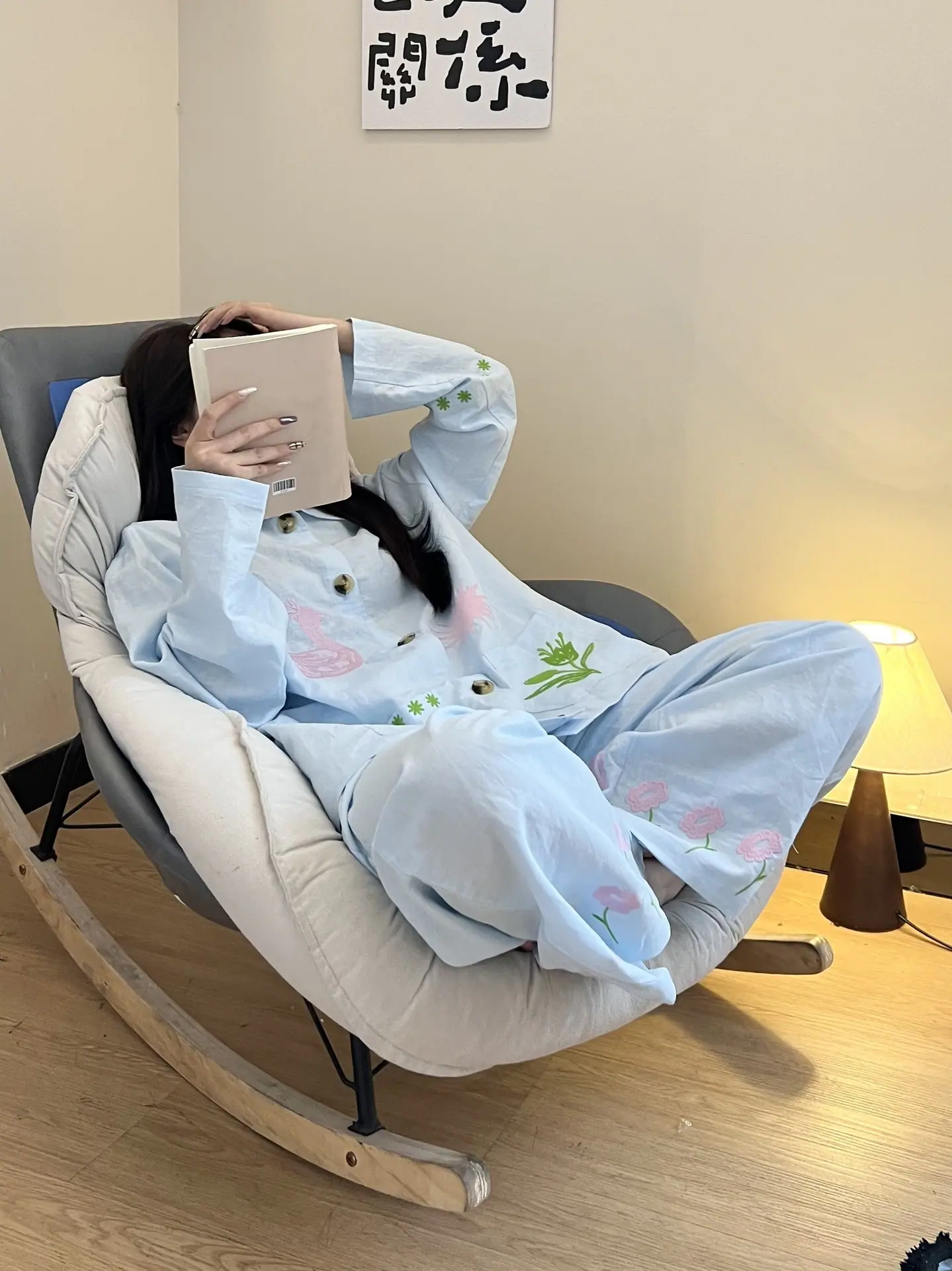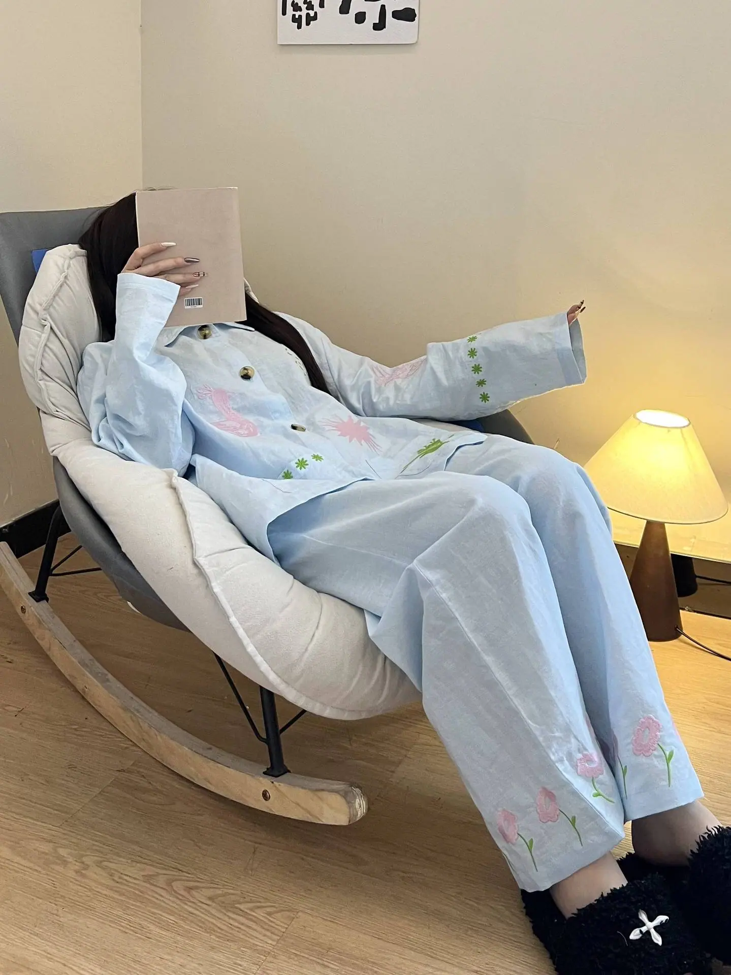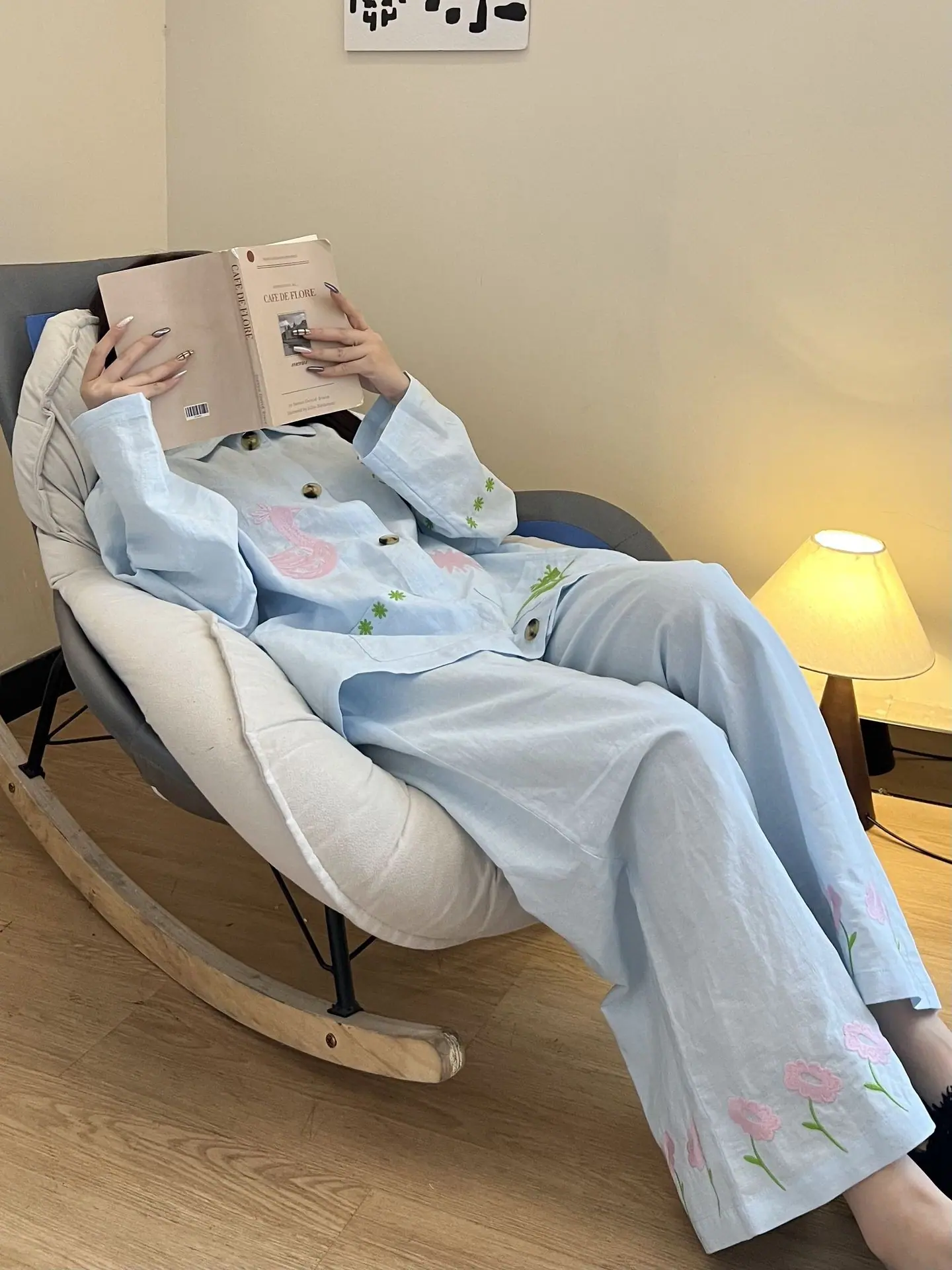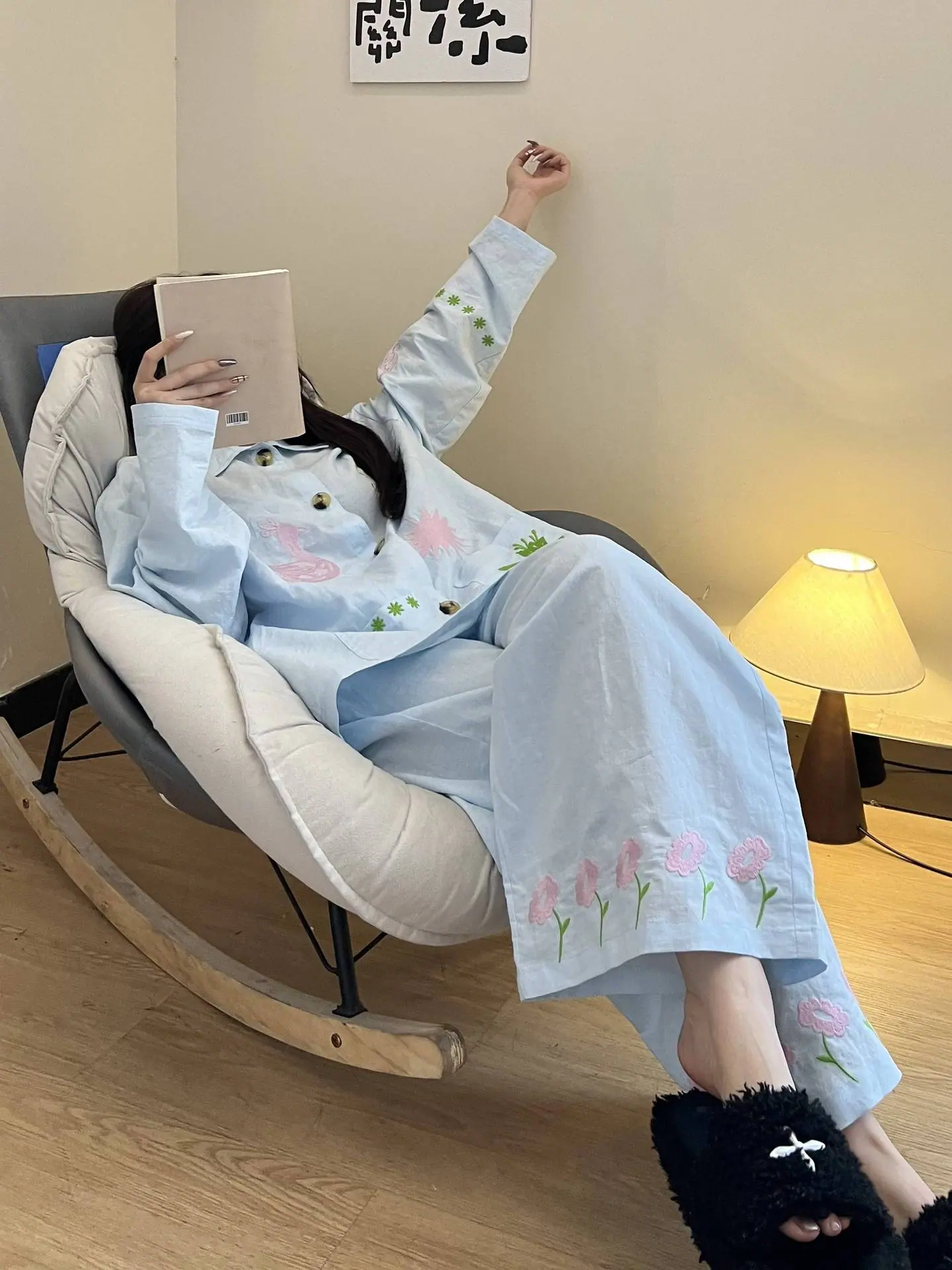 Pijama Sencillo Dulce y Encantador para Niña Otoño Nuevo Manga Larga Pantalón Largo Holgado Se Puede Usar Fuera Conjunto Ropa para el Hogar Tendencia
