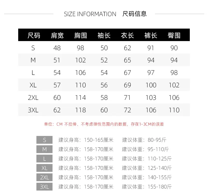 S Recommended [80-95 catties], M Recommended [95-110 catties], L Recommended [110-125 catties], XL Recommendat...