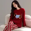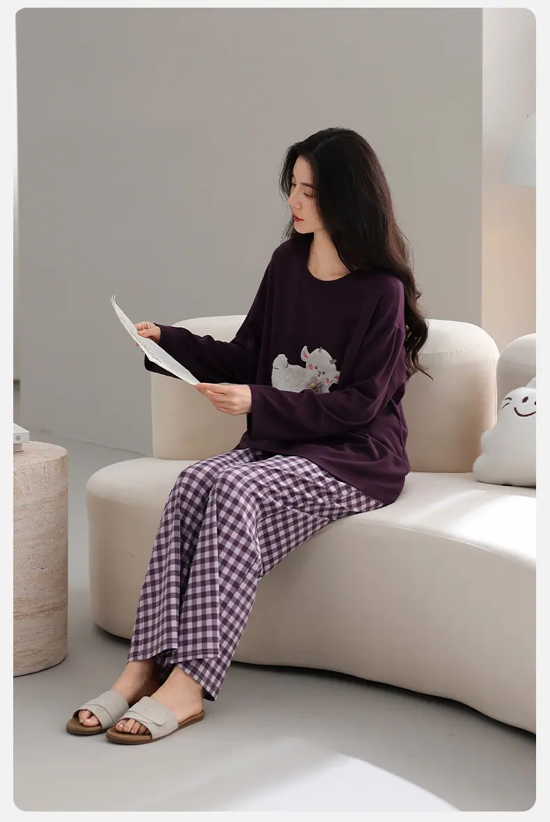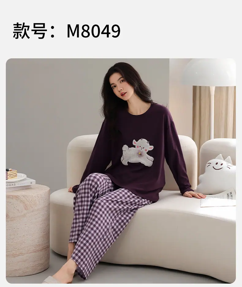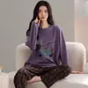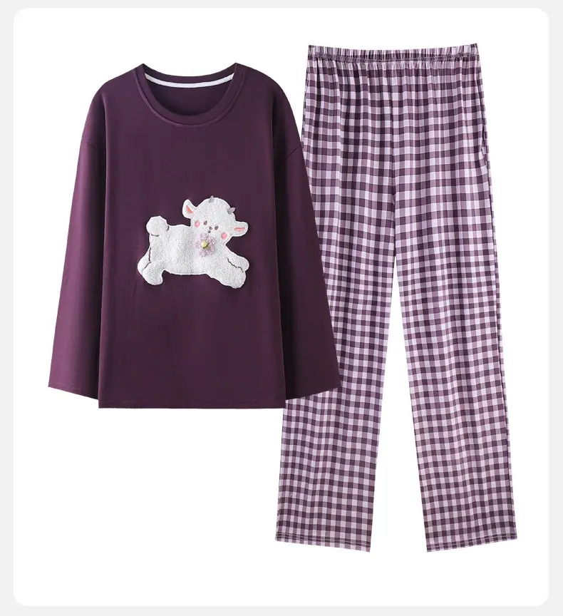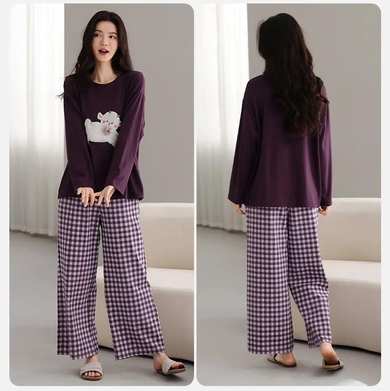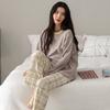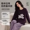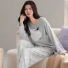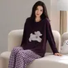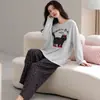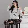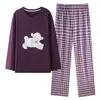 Conjunto de Ropa de Casa de Algodón Puro para Mujer Otoño Manga Larga Pantalón Largo Ropa de Exterior para Mujer Otoño Estilo Coreano Lindo Dibujo Animado Todo Algodón