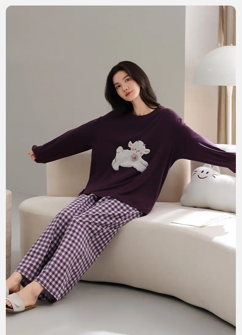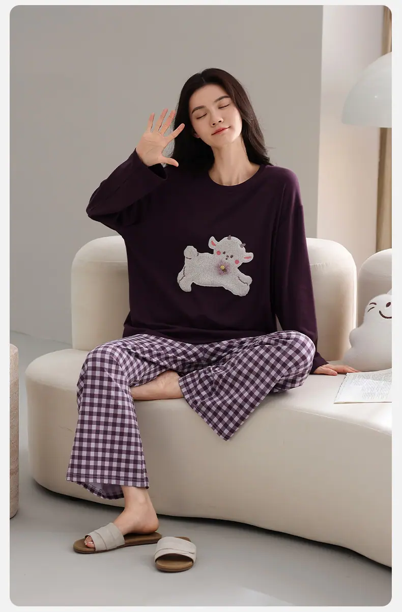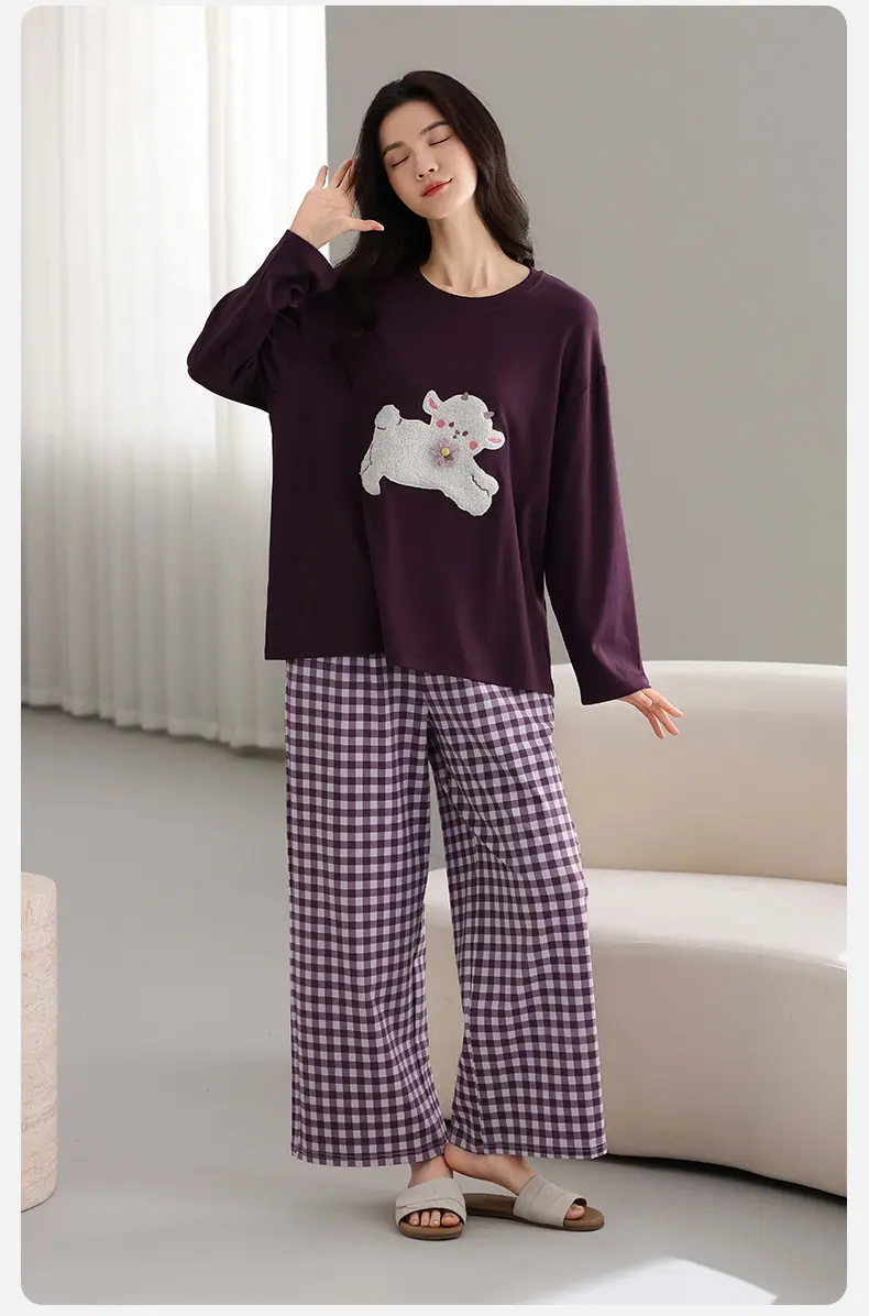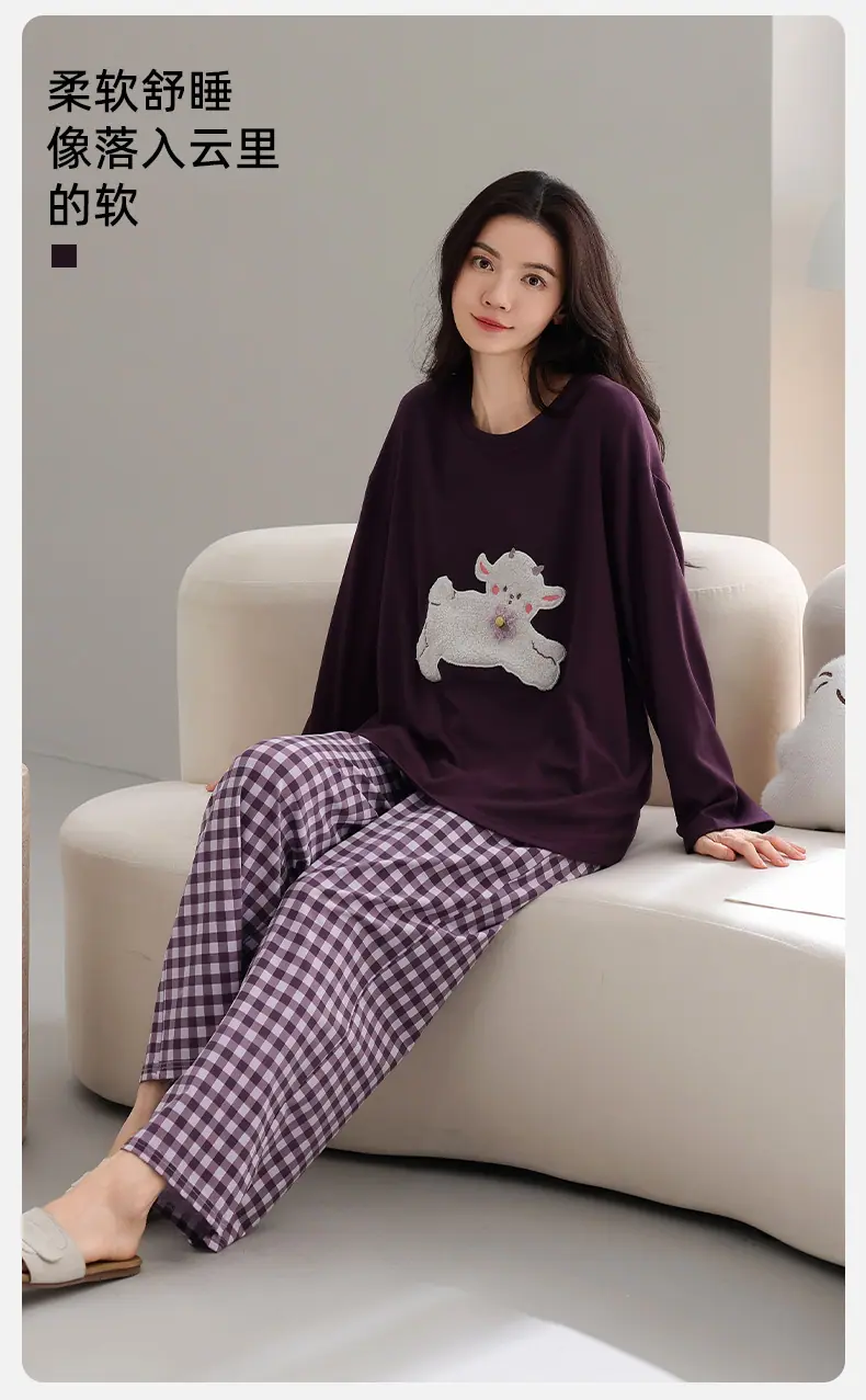 Conjunto de Ropa de Casa de Algodón Puro para Mujer Otoño Manga Larga Pantalón Largo Ropa de Exterior para Mujer Otoño Estilo Coreano Lindo Dibujo Animado Todo Algodón