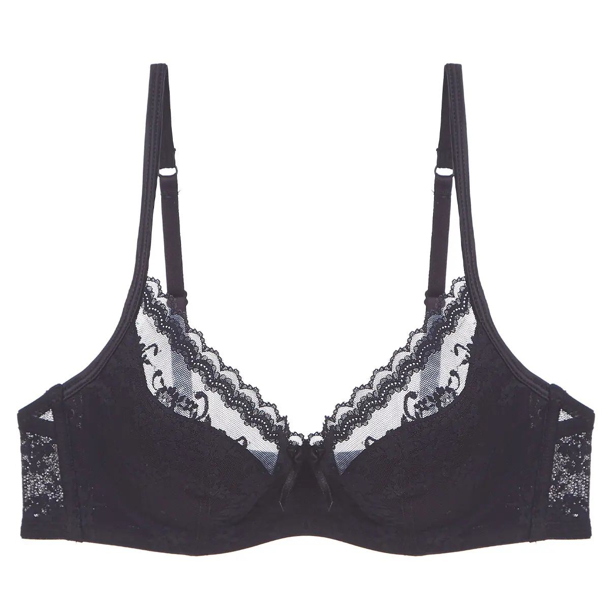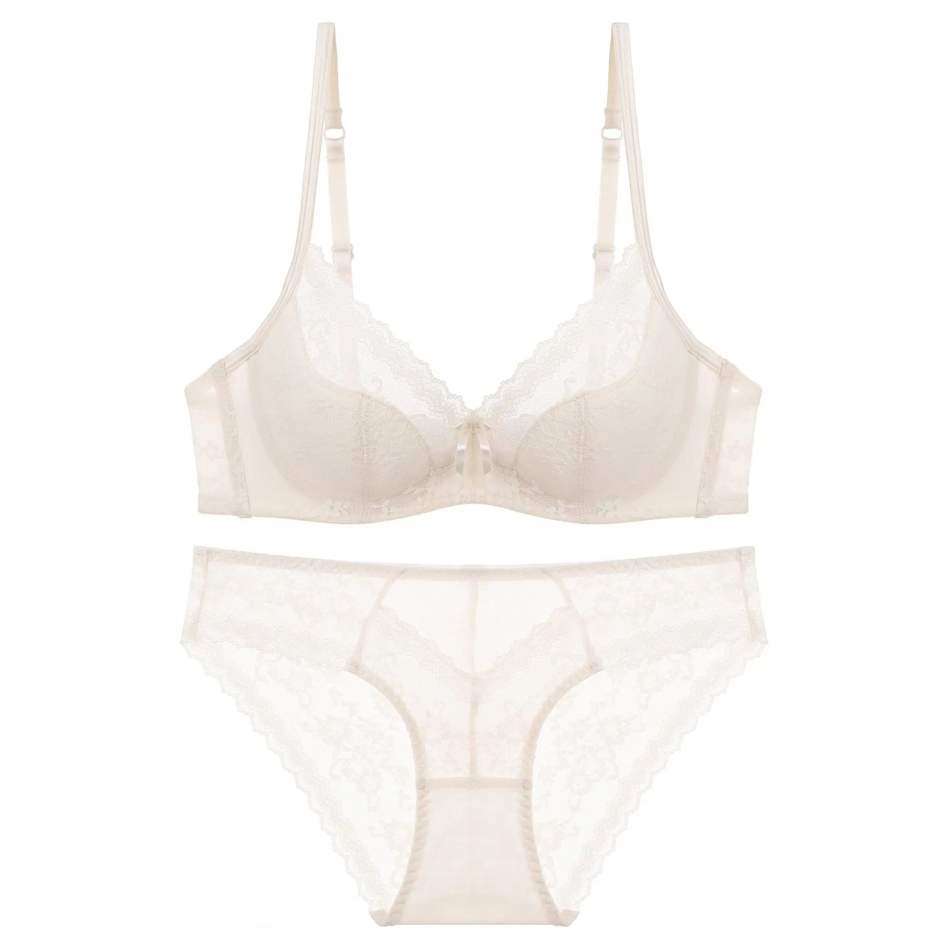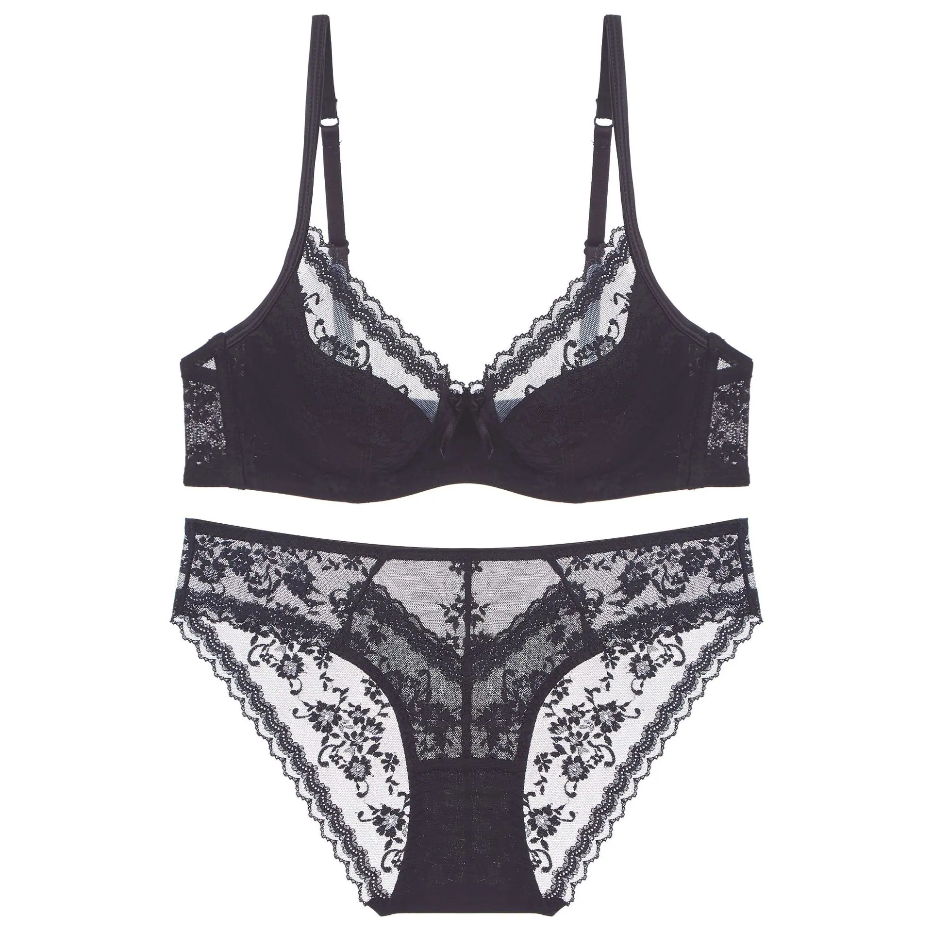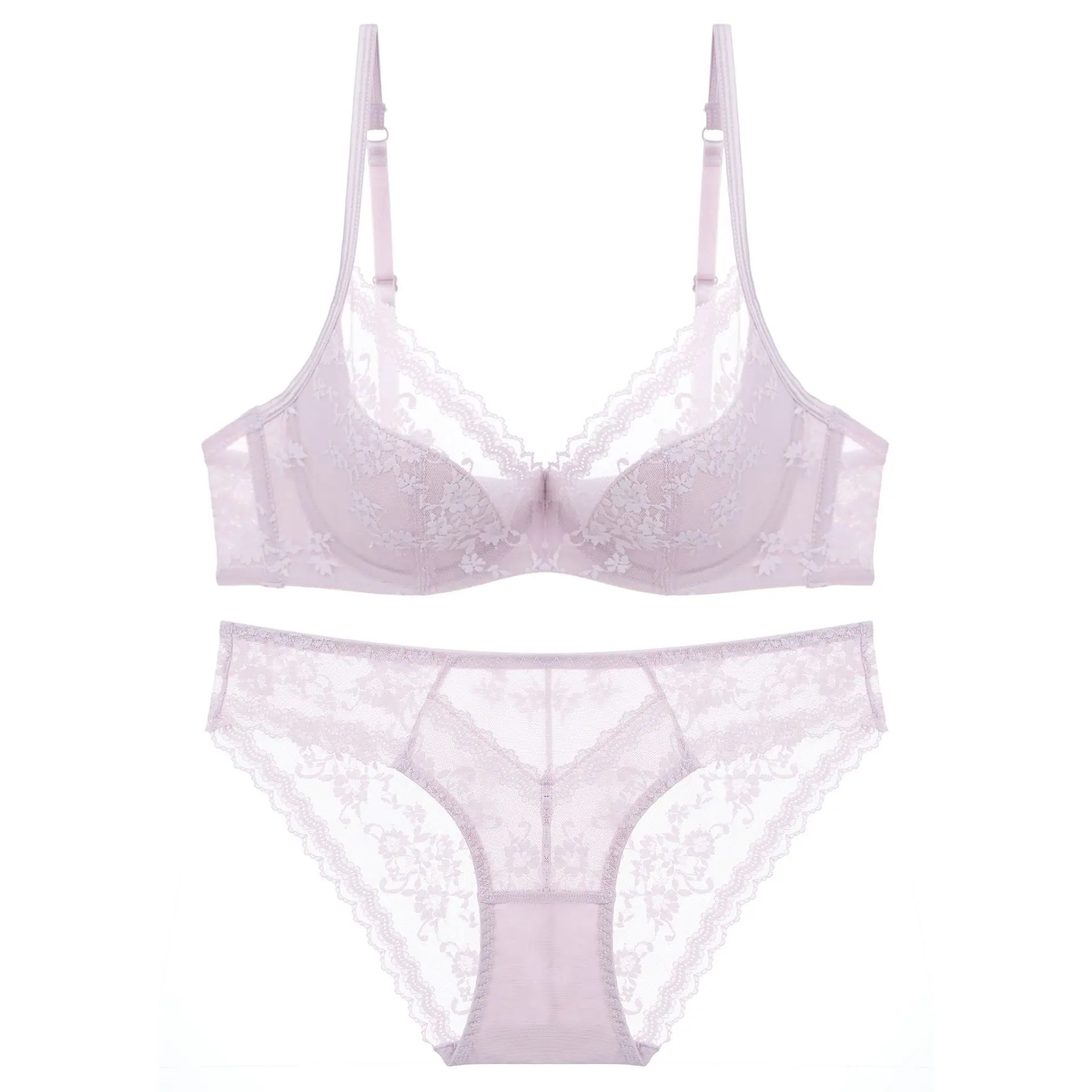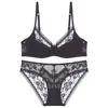 Ropa interior sexy europea y americana Copa pura delgada francesa Aro de acero suave Ropa interior de encaje Pecho grande Pequeño Sujetador anticacida Traje