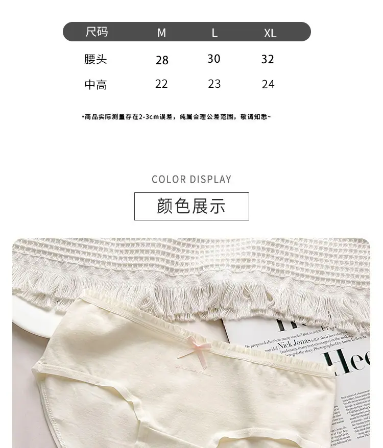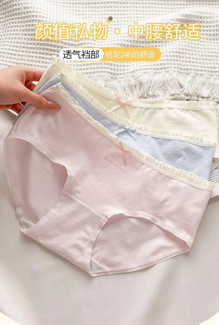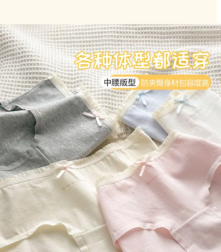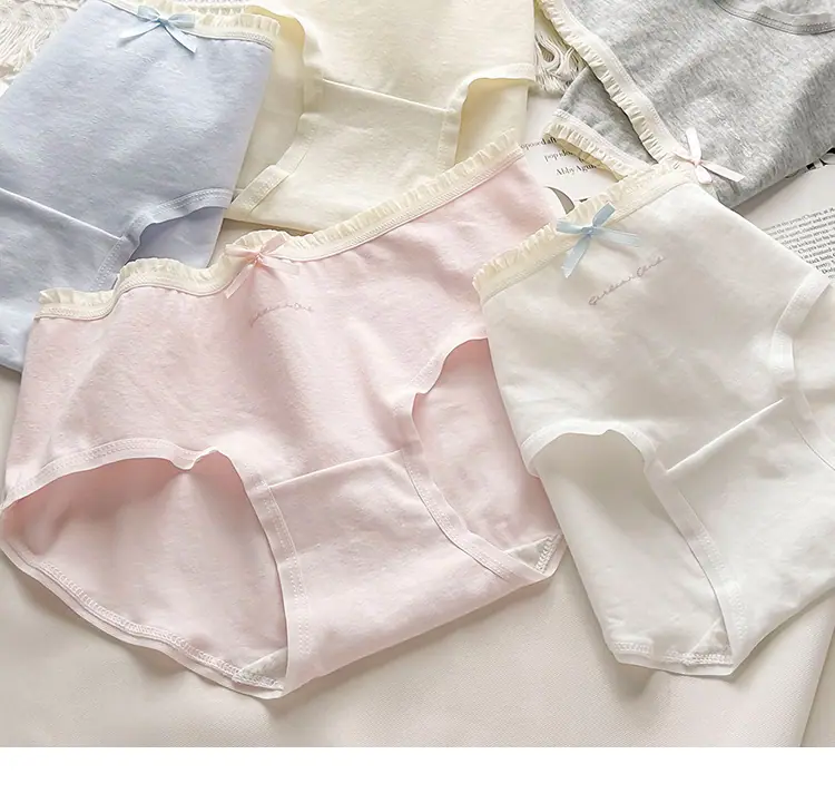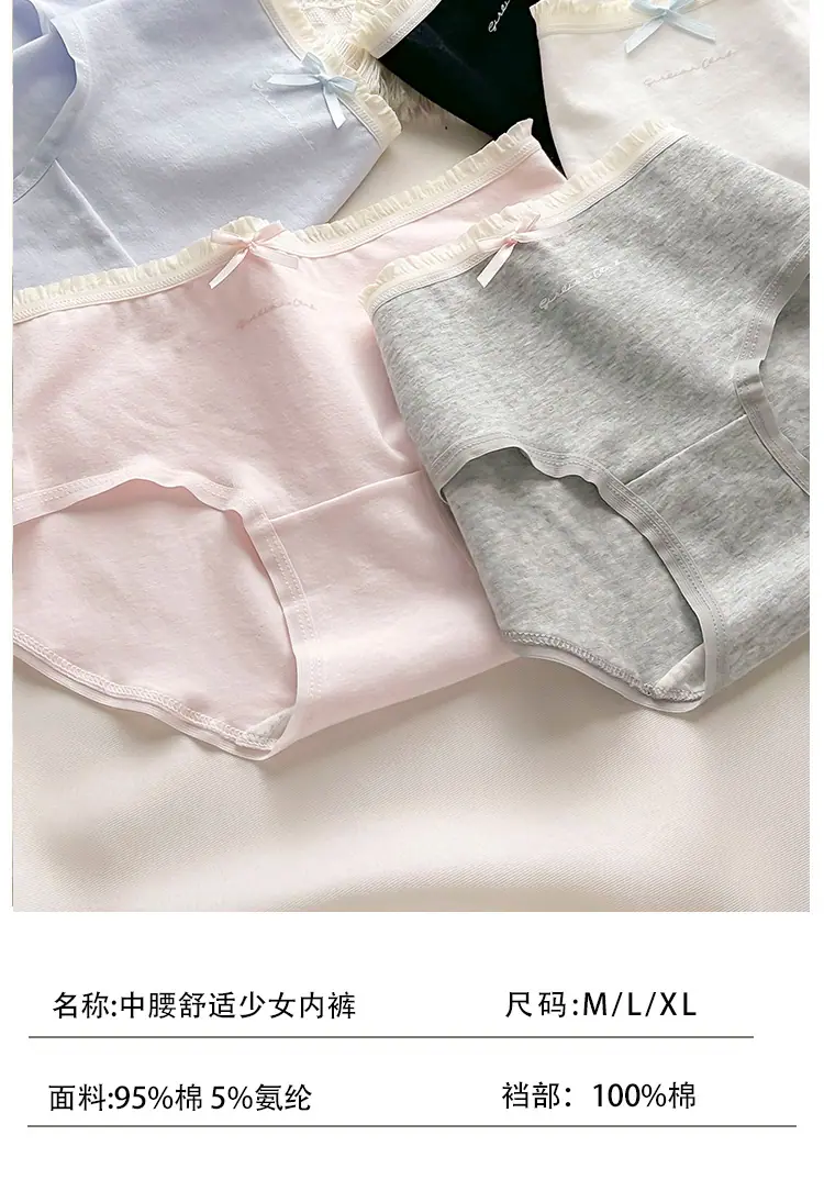 7A Calzones Antibacteriales Nuevos Dulces Simples de Algodón Puro para Niñas de Cintura Media Cómodos Transpirables Suaves Calzones Triángulo para Niña