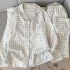 Venta al por mayor del fabricante Pijamas de talla grande para mujer Primavera y Otoño Manga larga Lindo Cuadros Azules Gato Kt Ropa de casa Conjunto de dos piezas Se puede usar en el exterior