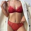 Ropa interior sexy de belleza en la espalda estilo francés, sujetador inalámbrico de copa triangular bordada ultrafina, talla grande para busto pequeño, traje de ropa interior de talla grande