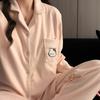 Pijama de Terciopelo Grueso Doble Cara Listo para Usar de Otoño e Invierno para Mujer, Set de Dos Piezas Ropa de Casa Bordada de Gato Kt Rosa Dulce