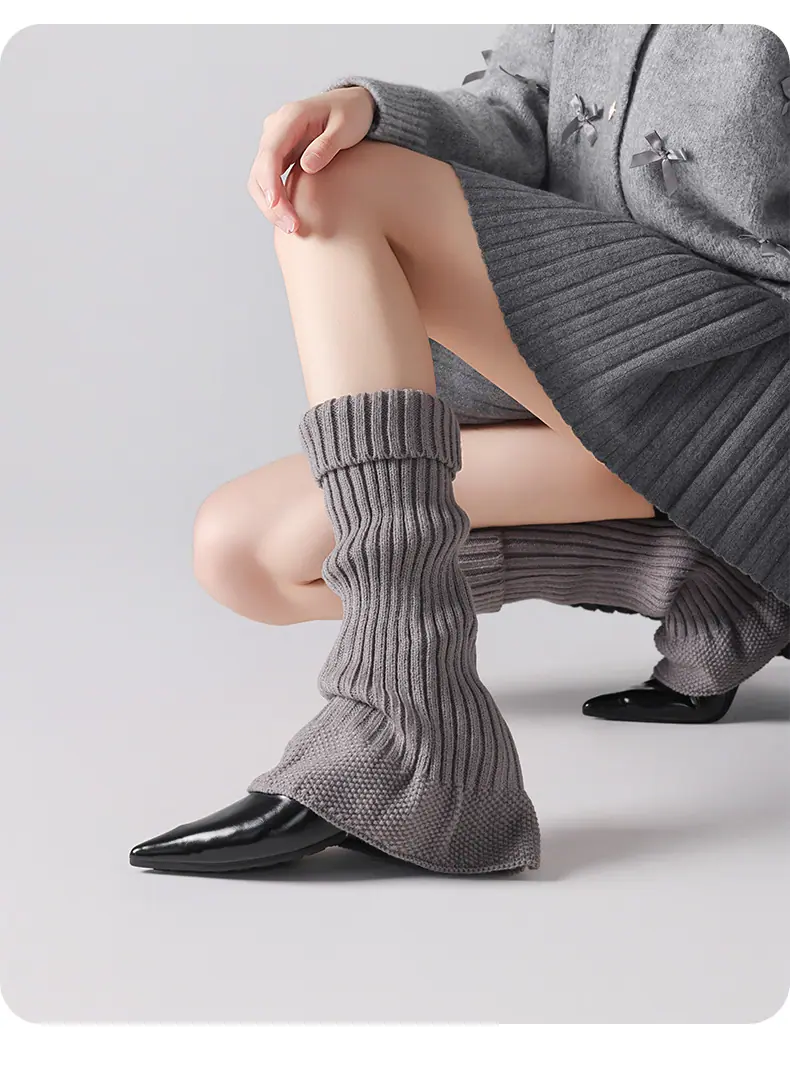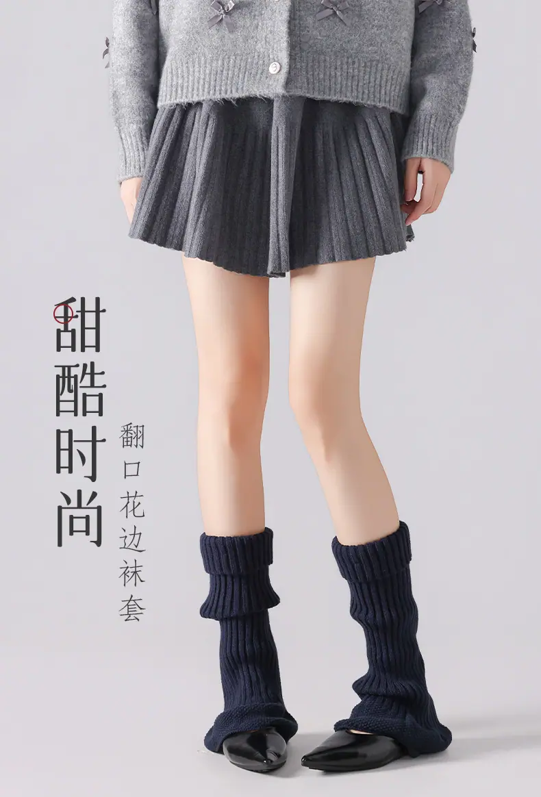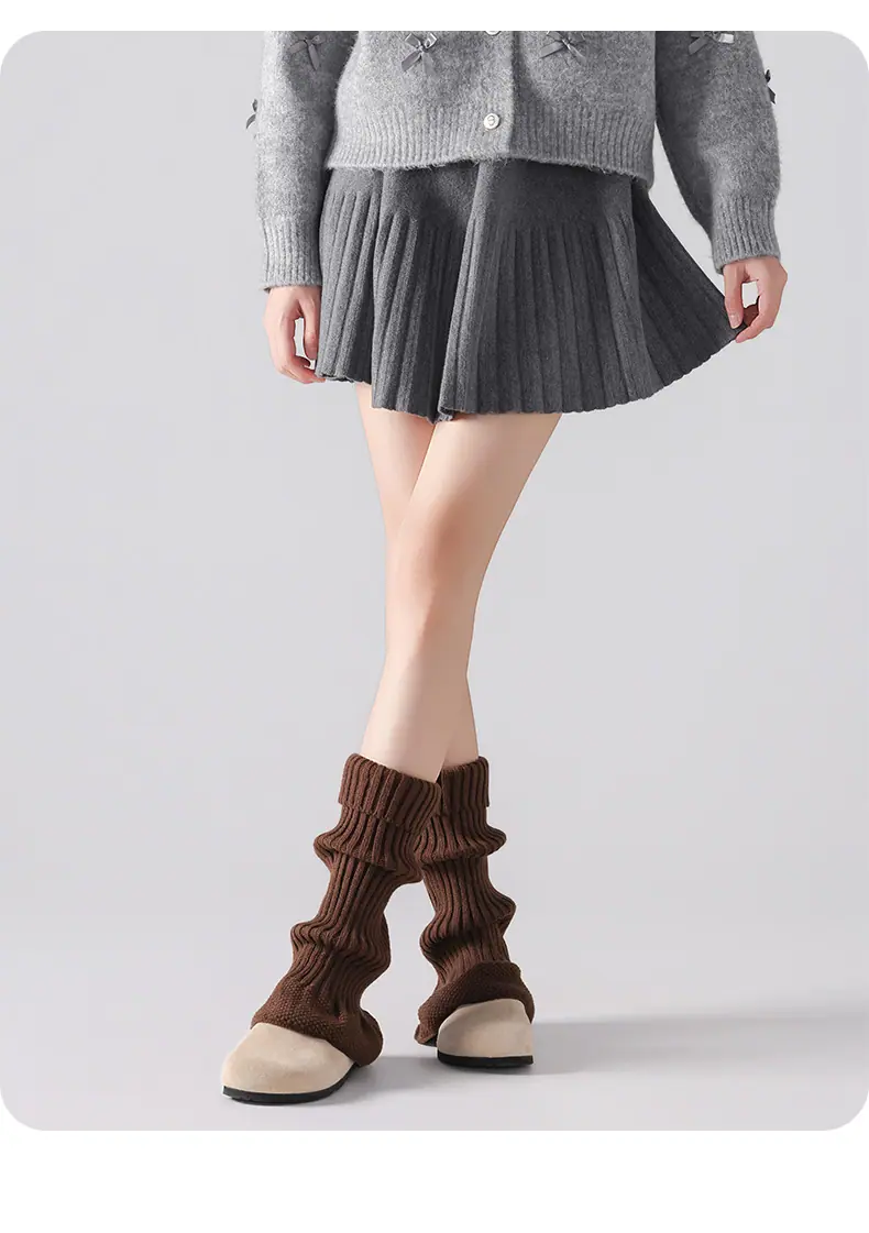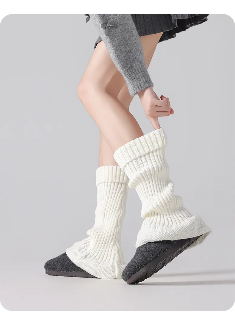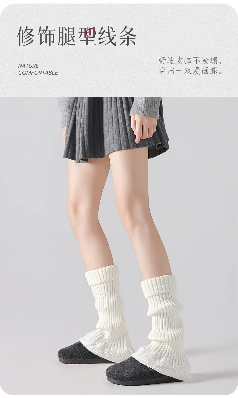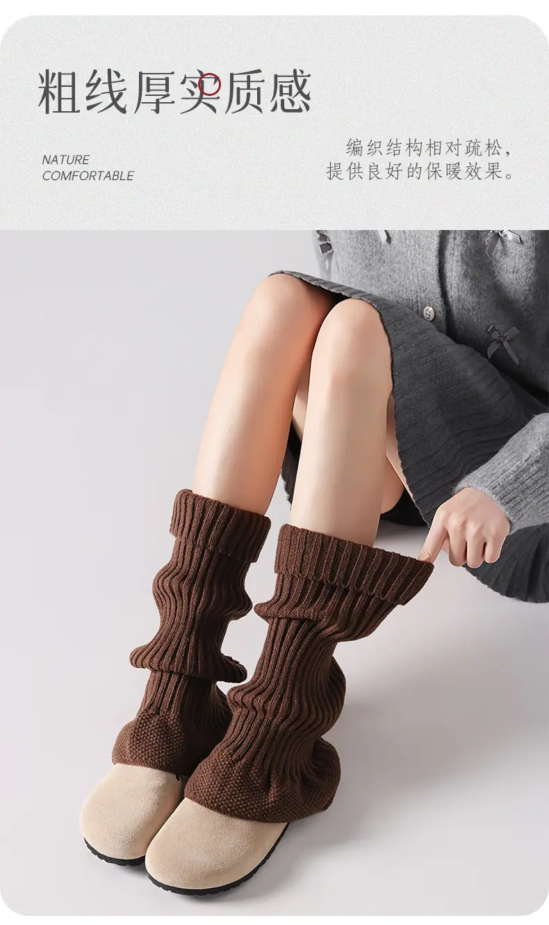 Calentadores de Pierna de Punto de Color Sólido Calcetines Arrugados Calcetines hasta la Pantorrilla Estilo Japonés Otoño Invierno Cálidos Calentadores de Pierna JK Estilo Simple Versátil Suave Antibacteriano