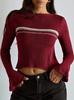Suéter de Moda Europeo y Americano 2025 Rayas Bloque de Color Ajustado Manga Larga Tejido Estilo Sexy Patchwork Manga de Campana
