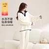 Pijama de Pull-over con Cuello en V de Medio Terciopelo para Mujer en Otoño e Invierno Ropa de Casa Cálida de Medio Terciopelo Estilo Coreano Traje de Casa