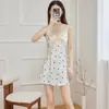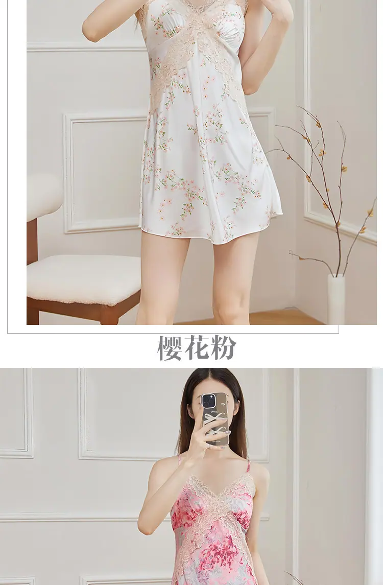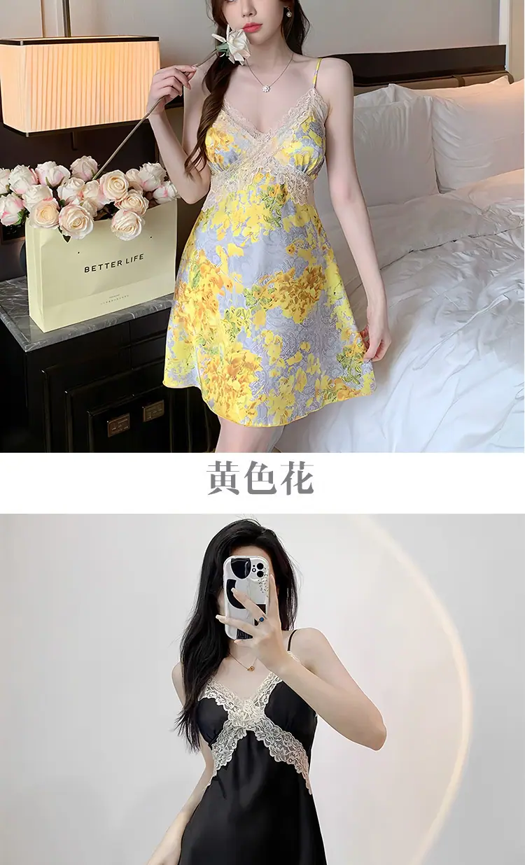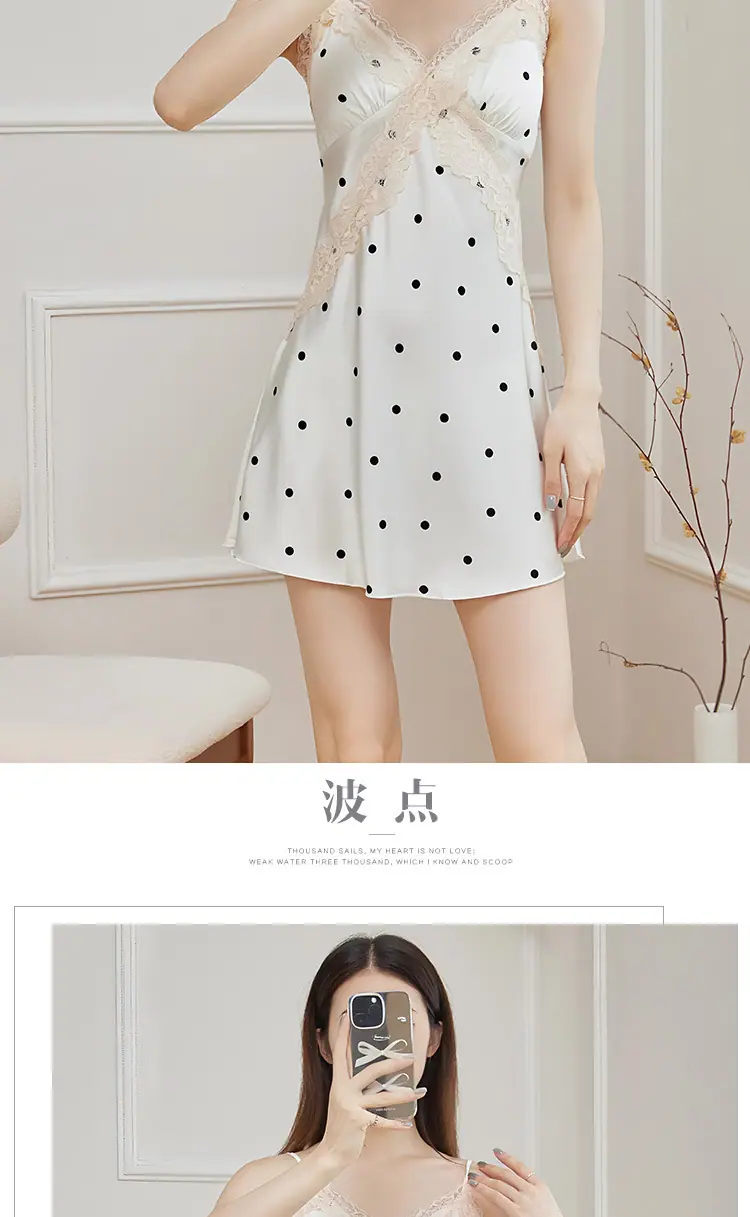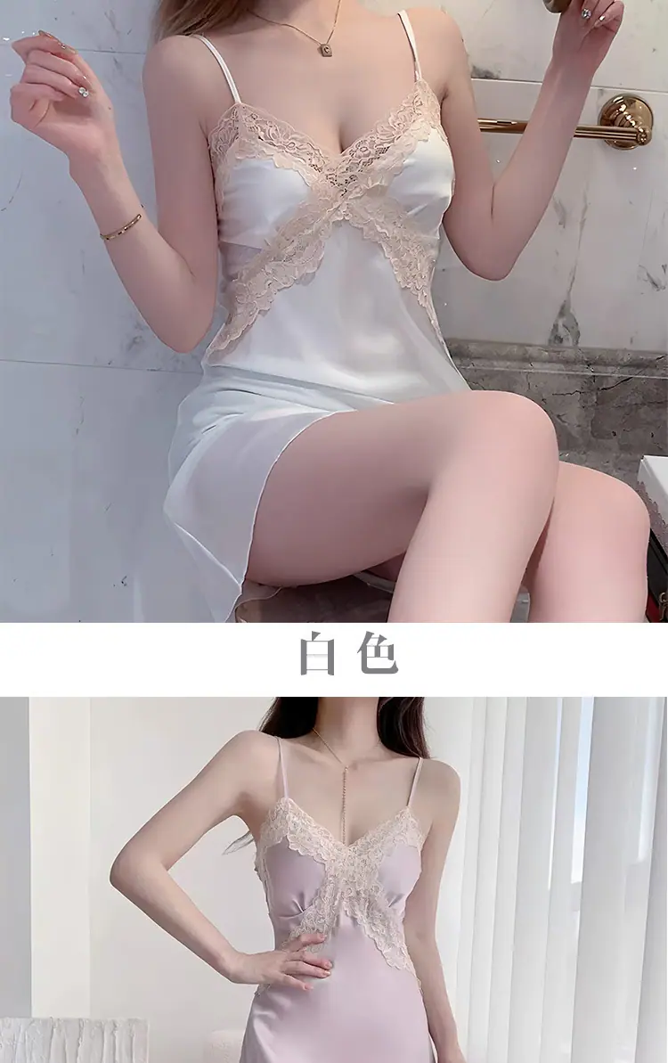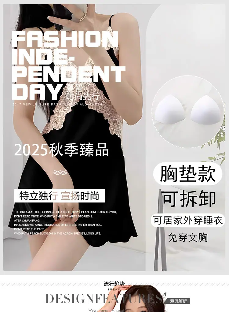 Camisón de Tirantes para Mujer Verano Estilo Delgado Seda de Hielo Deseo Puro Viento Sexy Encaje Pijama con Almohadilla en el Pecho Talla Grande Adelgazante Ropa para Estar en Casa