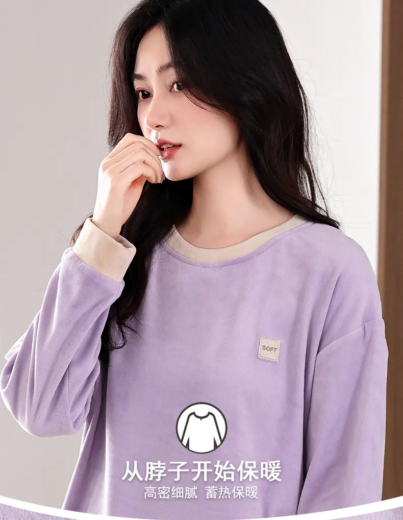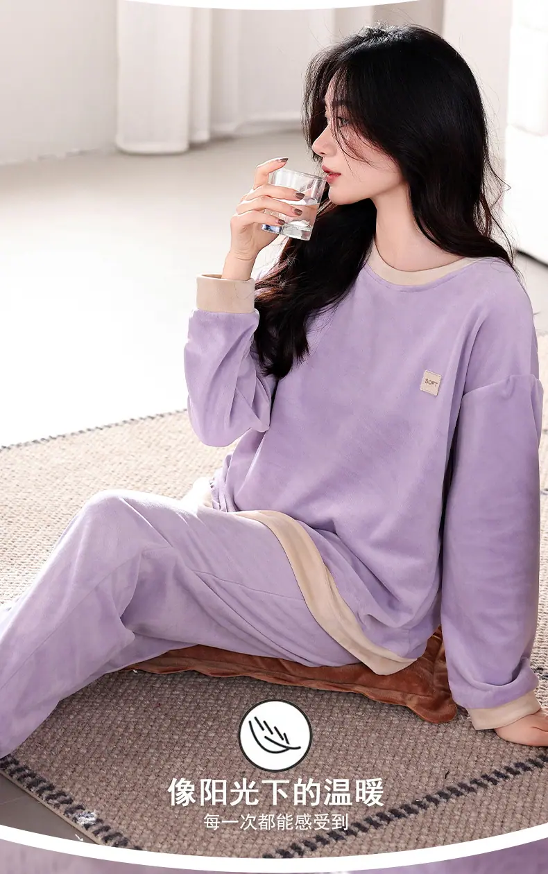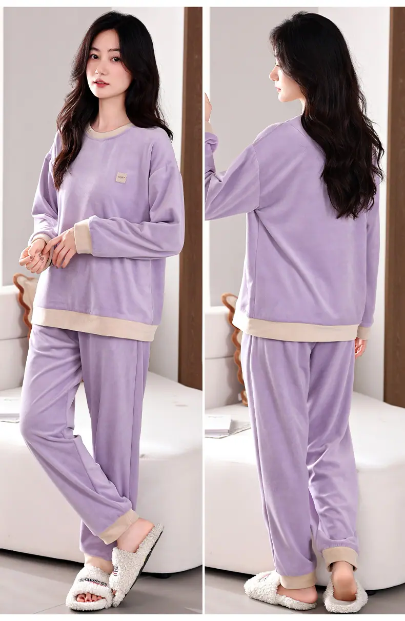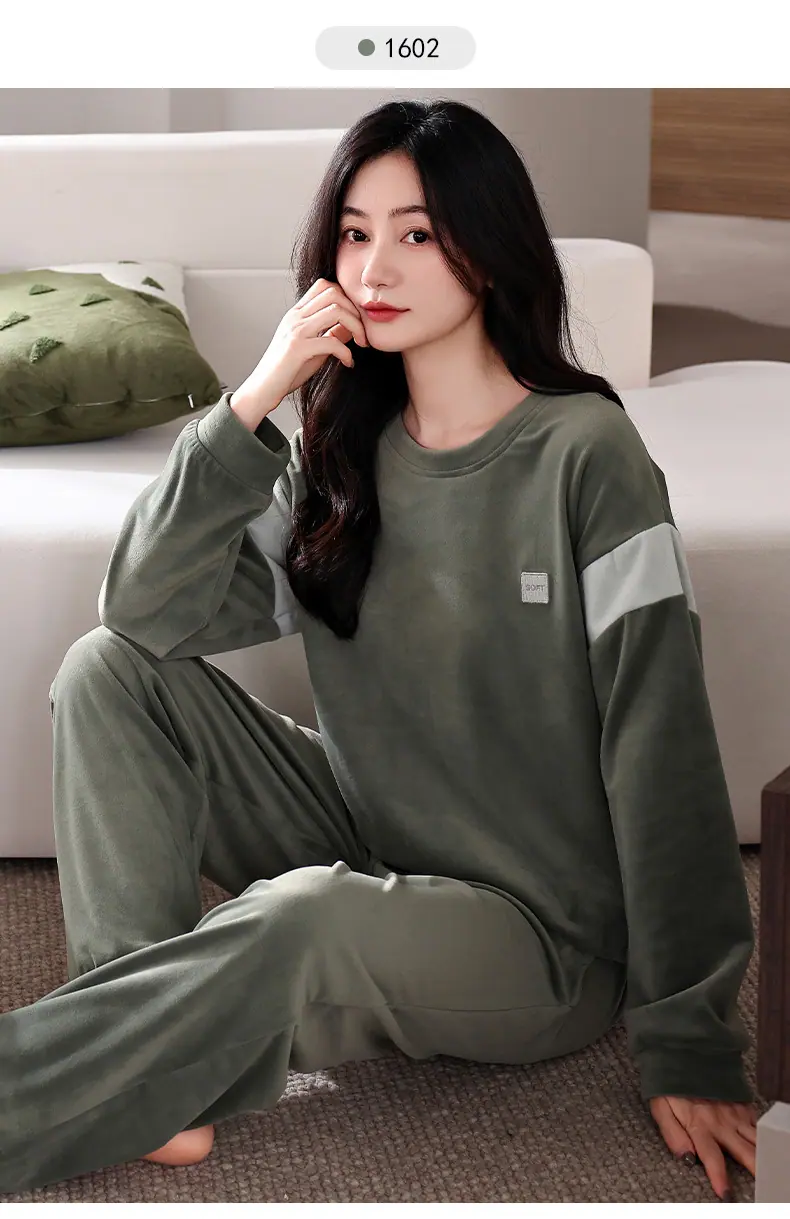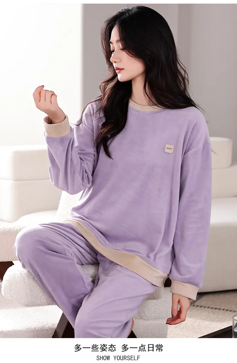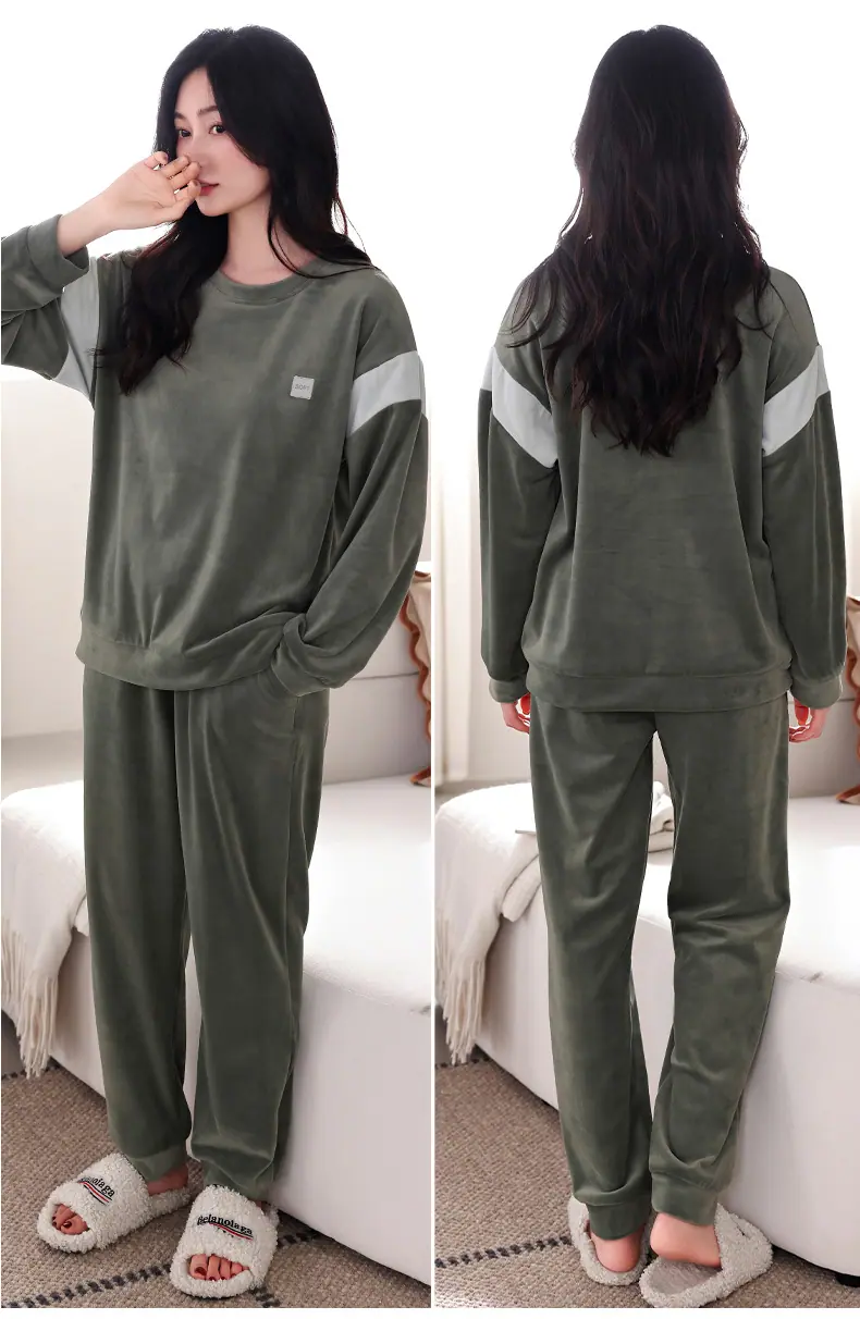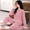 Pijama de terciopelo de isla para mujer otoño e invierno nuevo terciopelo fino cálido manga larga traje de terciopelo coral invierno franela ropa para el hogar