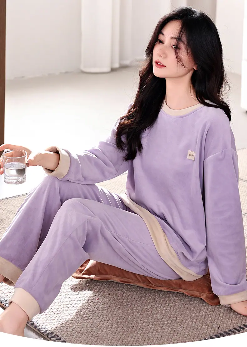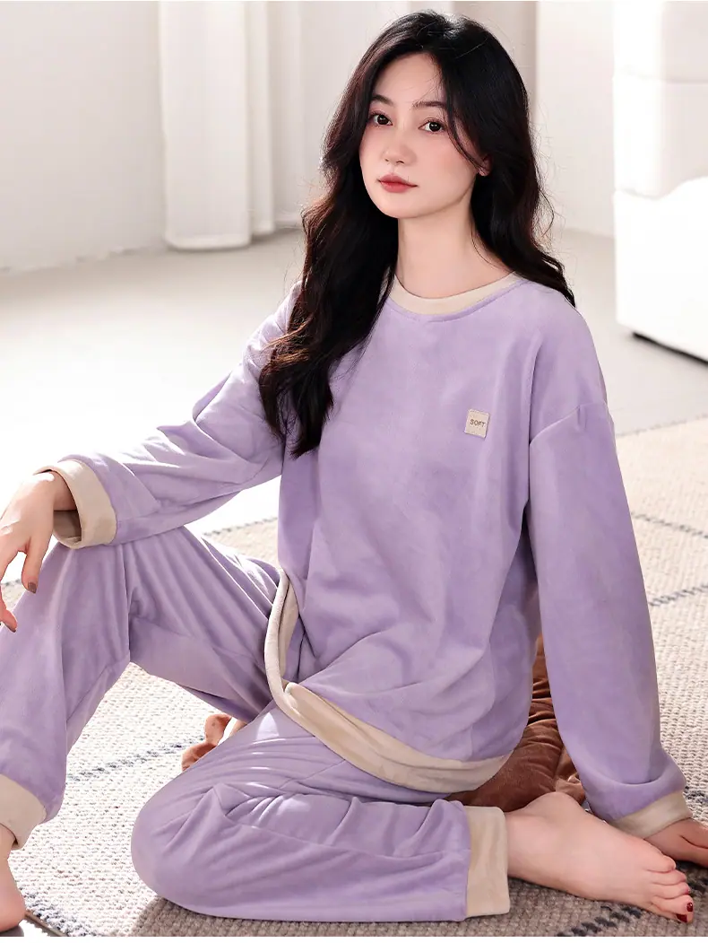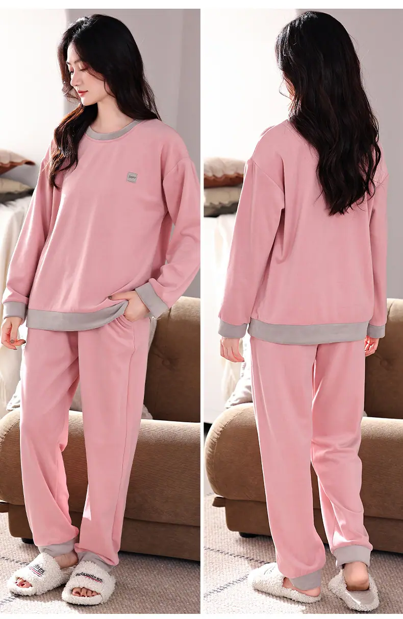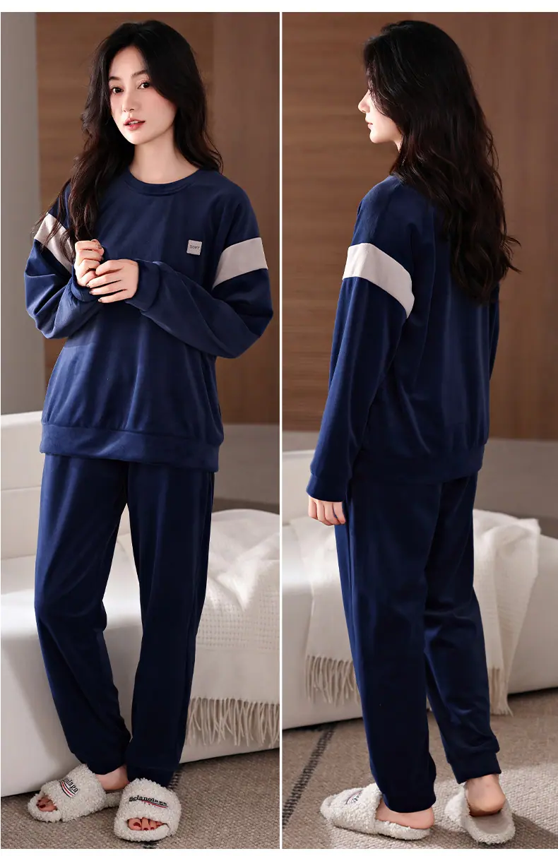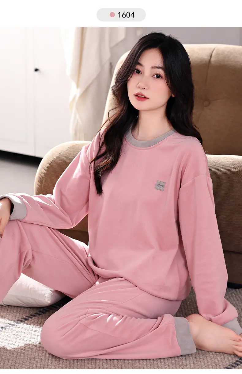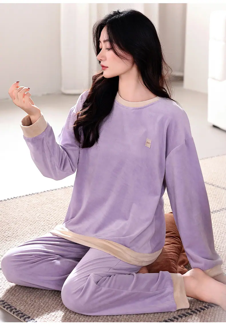 Pijama de terciopelo de isla para mujer otoño e invierno nuevo terciopelo fino cálido manga larga traje de terciopelo coral invierno franela ropa para el hogar