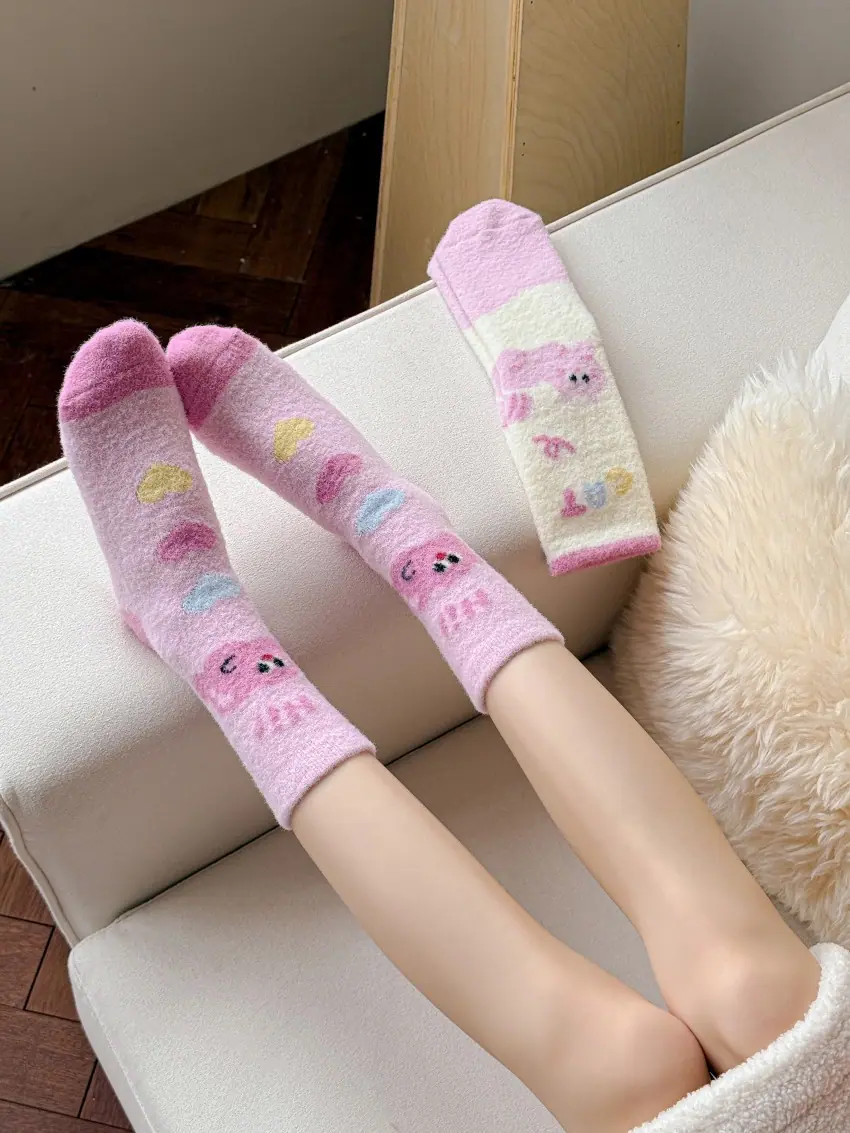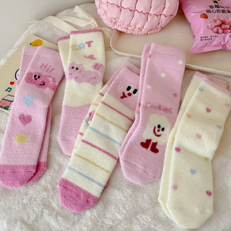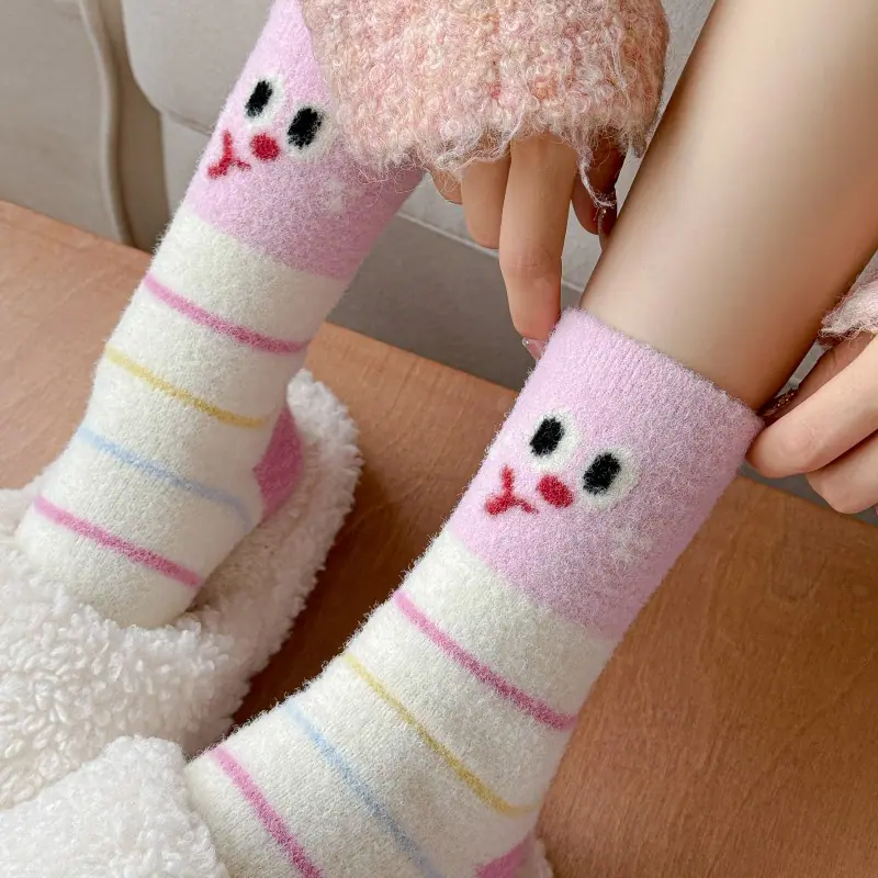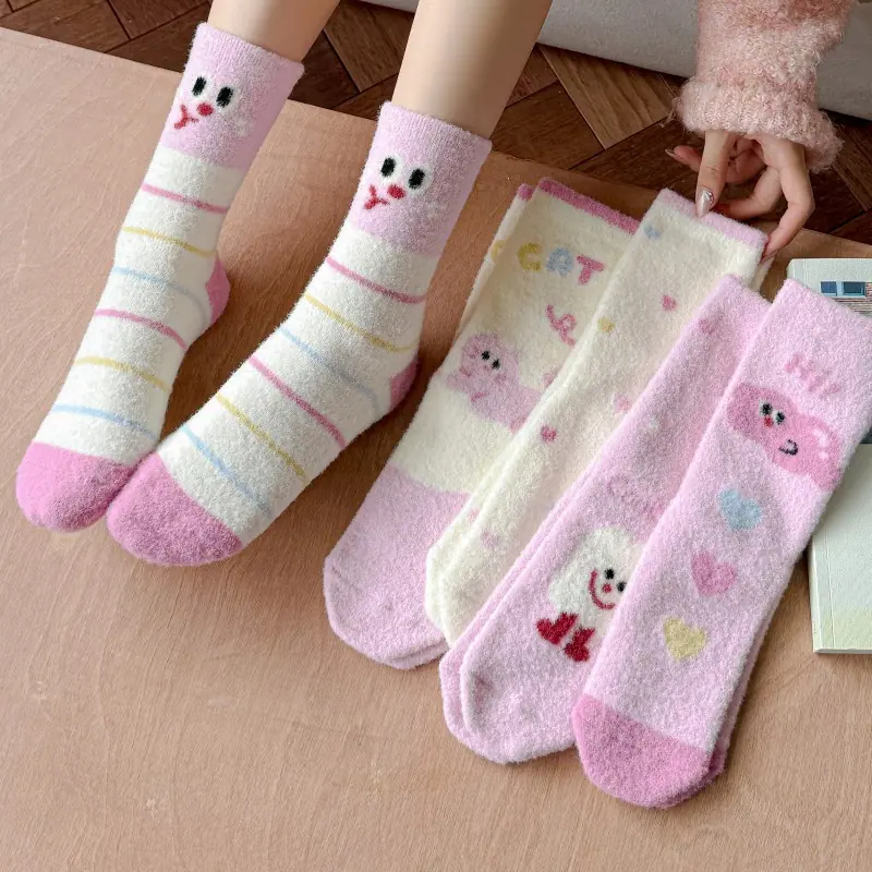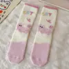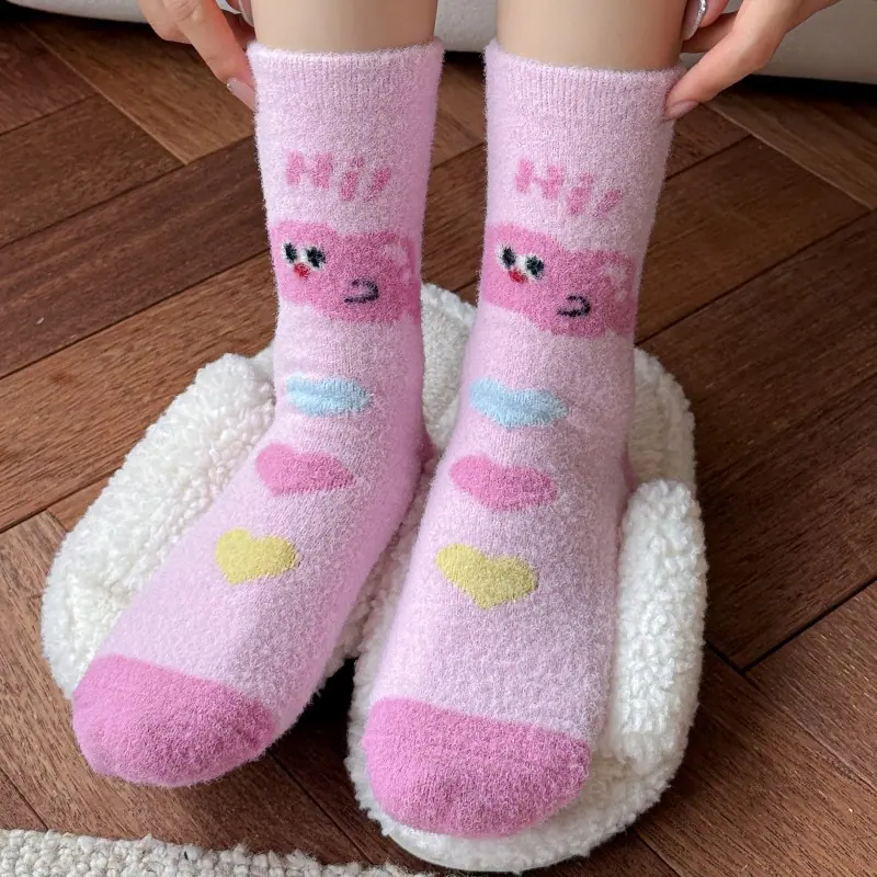 Calcetines de felpa otoño e invierno calcetines gruesos cálidos de media caña lindos de dibujos animados rosa invierno hogar esponjosos para dormir