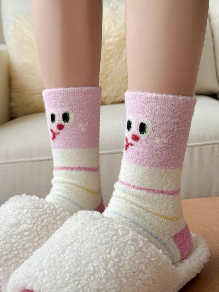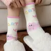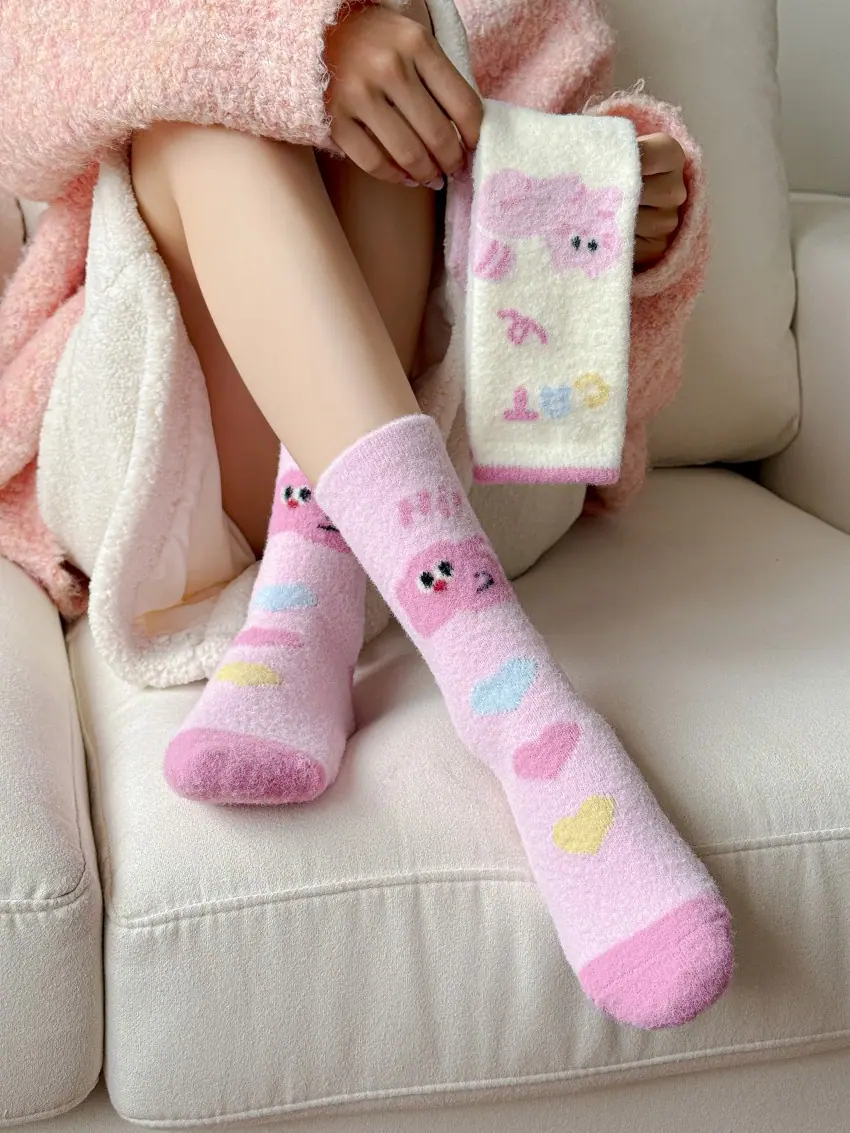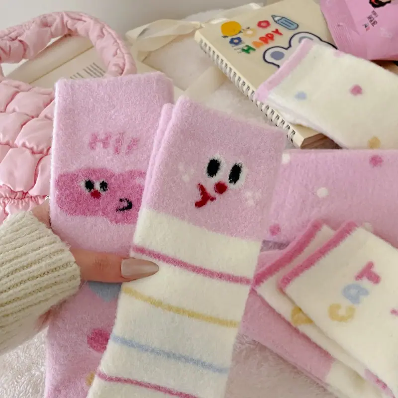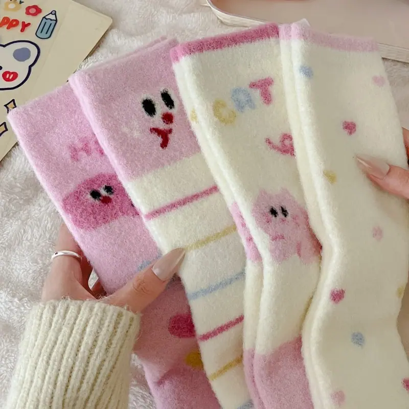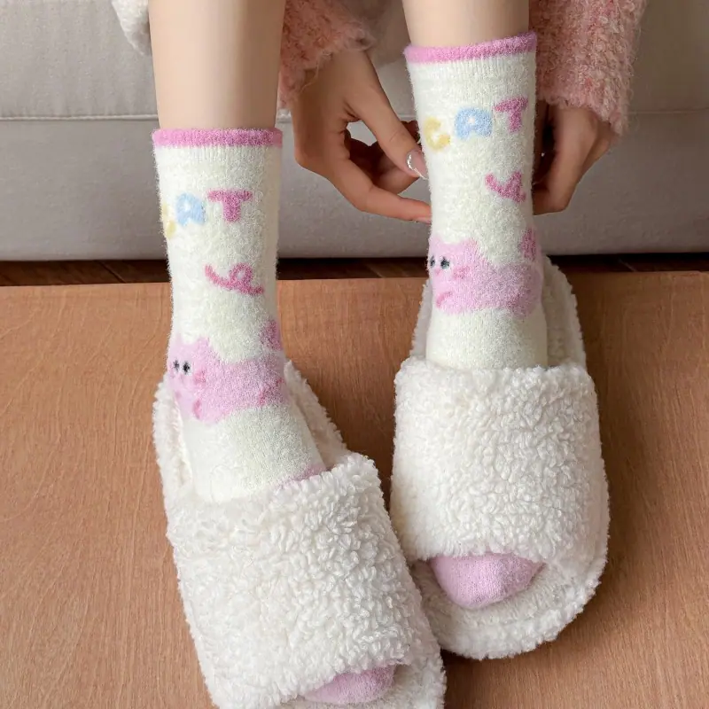 Calcetines de felpa otoño e invierno calcetines gruesos cálidos de media caña lindos de dibujos animados rosa invierno hogar esponjosos para dormir