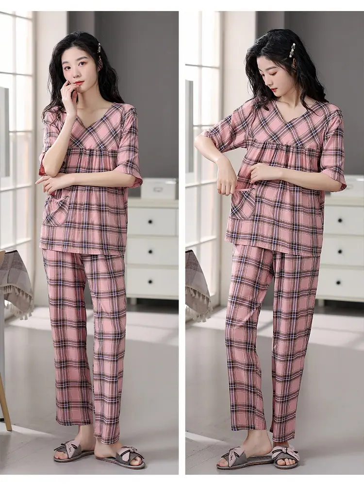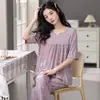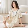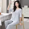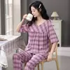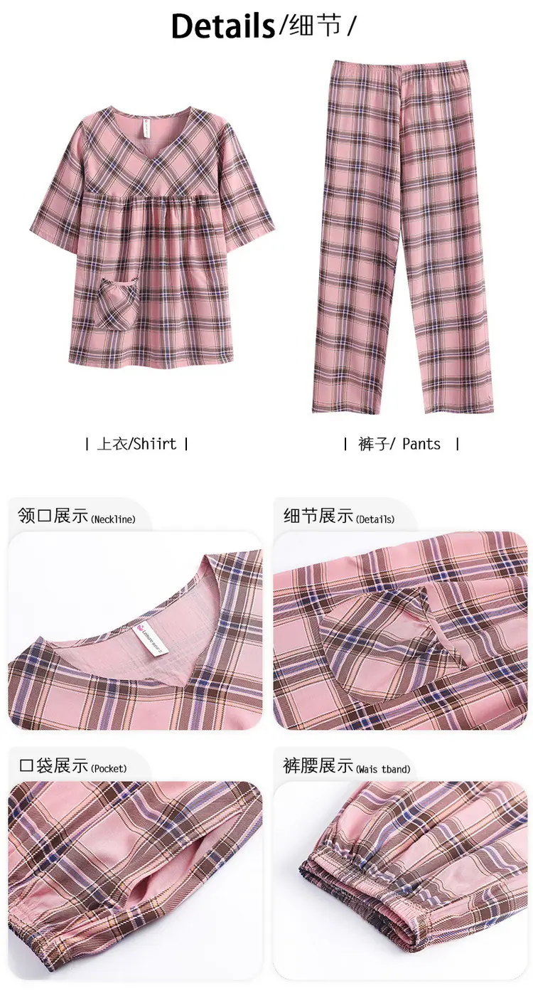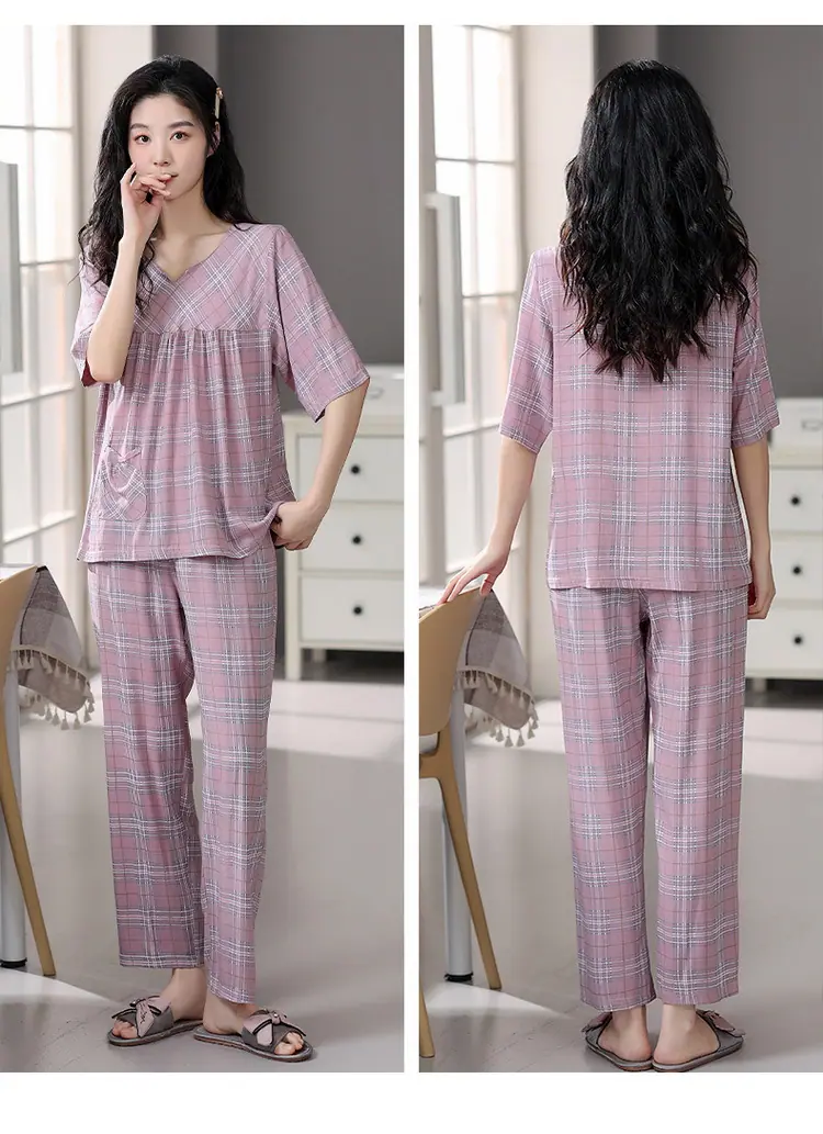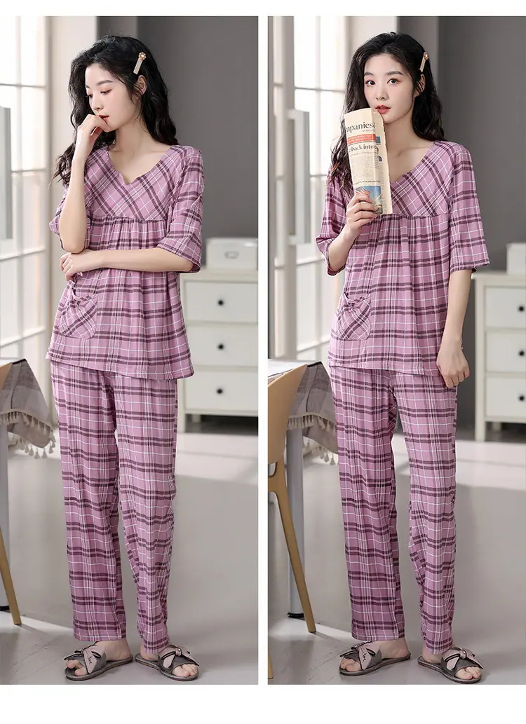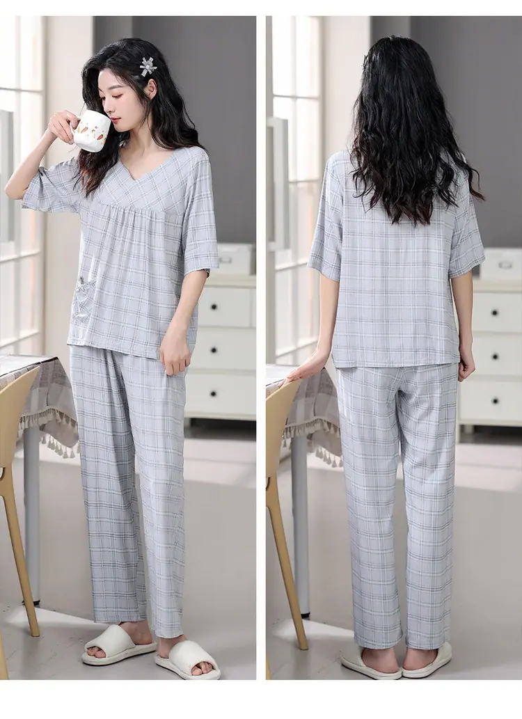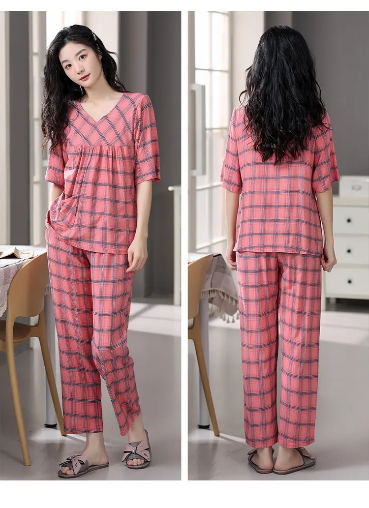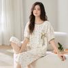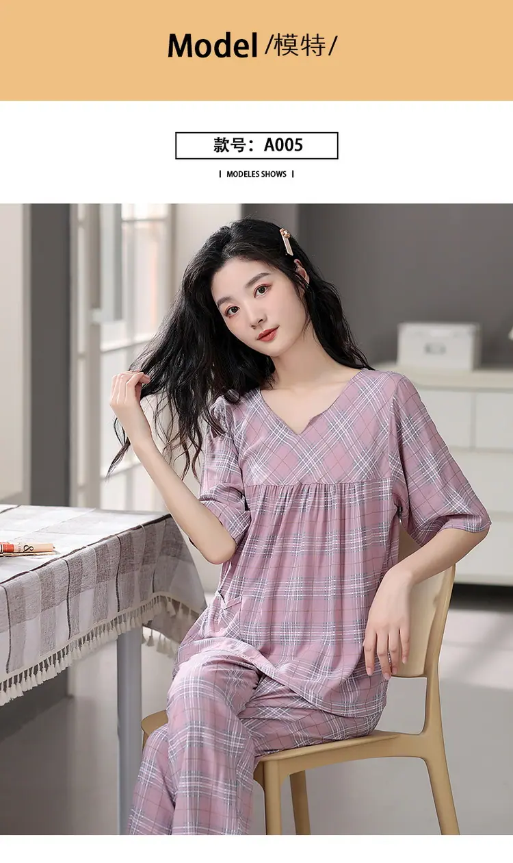 Pijama de Verano para Mujer de Manga Corta y Pantalón de Algodón Tejido Casual Talla Grande Ropa de Casa Traje de Verano para Exterior Delgado