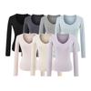 Camiseta Americana Pura Sexy con Forro Polar de Cuello en V y Manga Larga para Mujer Otoño 2025 Adelgazante Capa Interior Camiseta Base Top Chica Caliente