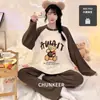 Pijama Lindo de Dibujos Animados de Algodón Imitación con Almohadillas para el Pecho para Mujer, Conjunto de Manga Larga con Cuello Redondo para Otoño que se Puede Usar Afuera, Ropa de Casa para Estudiantes, Otoño e Invierno