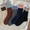 Compra Calcetines de Lana para Mujer, Calcetines Holgados para Otoño e Invierno, Forrados de Felpa, Engrosados, Cálidos, con Bloques de Color, Lunares Retro, de Borde Enrollado, Calcetines de Cachemir hasta la Pantorrilla al por mayor en Joom.pro