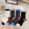 Calcetines de Lana para Mujer, Otoño e Invierno Nuevos Espesos Cálidos Estilo Retro Japonés Holgados, Estilo Coreano Bloques de Color Estilo Ins Calcetines Largos Casuales
