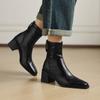 Nuevas Botas Martin Versátiles de Cuero Genuino con Suelas de Goma, Botas para Mujer de Talla Grande con Cremallera Trasera, Tacón Cuadrado, Punta Afilada, Botas de Media Caña de Piel de Vaca para Otoño e Invierno