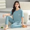 Pijama de Verano para Mujer de Modal de Manga Corta con Pantalón y Almohadilla en el Pecho Sensación Fresca Casual Delgada Talla Grande Ropa para el Hogar para traje Verano