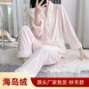 Nuevo Conjunto de Pijama Cardigan de Terciopelo de Isla para Mujer Otoño e Invierno Manga Larga Pantalones Gruesos Casual Suelto Cálido Ropa de Casa Venta al por Mayor