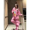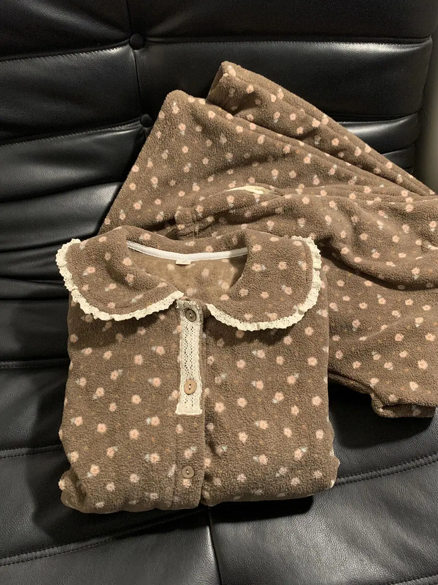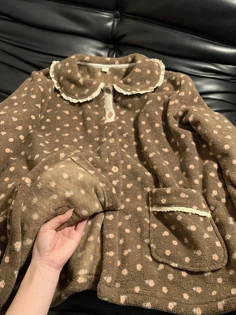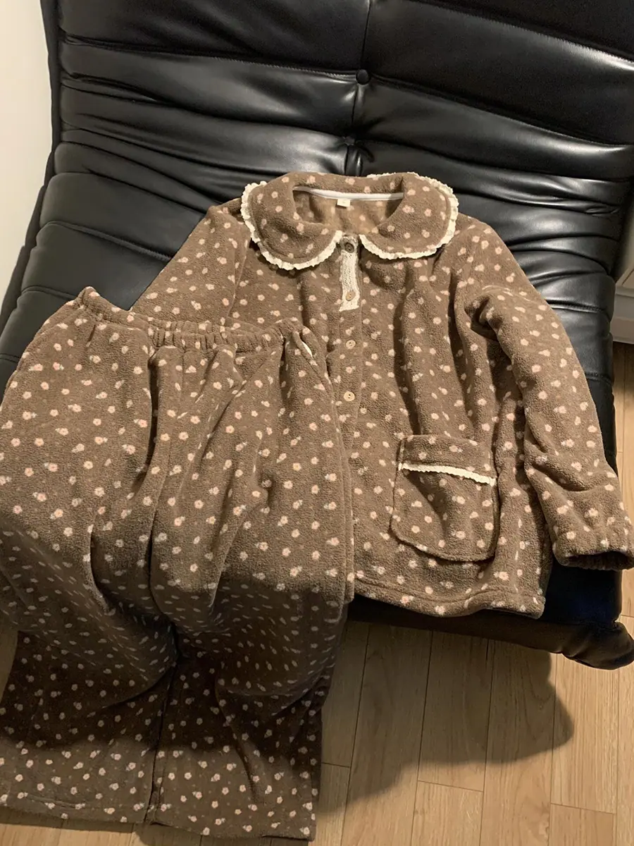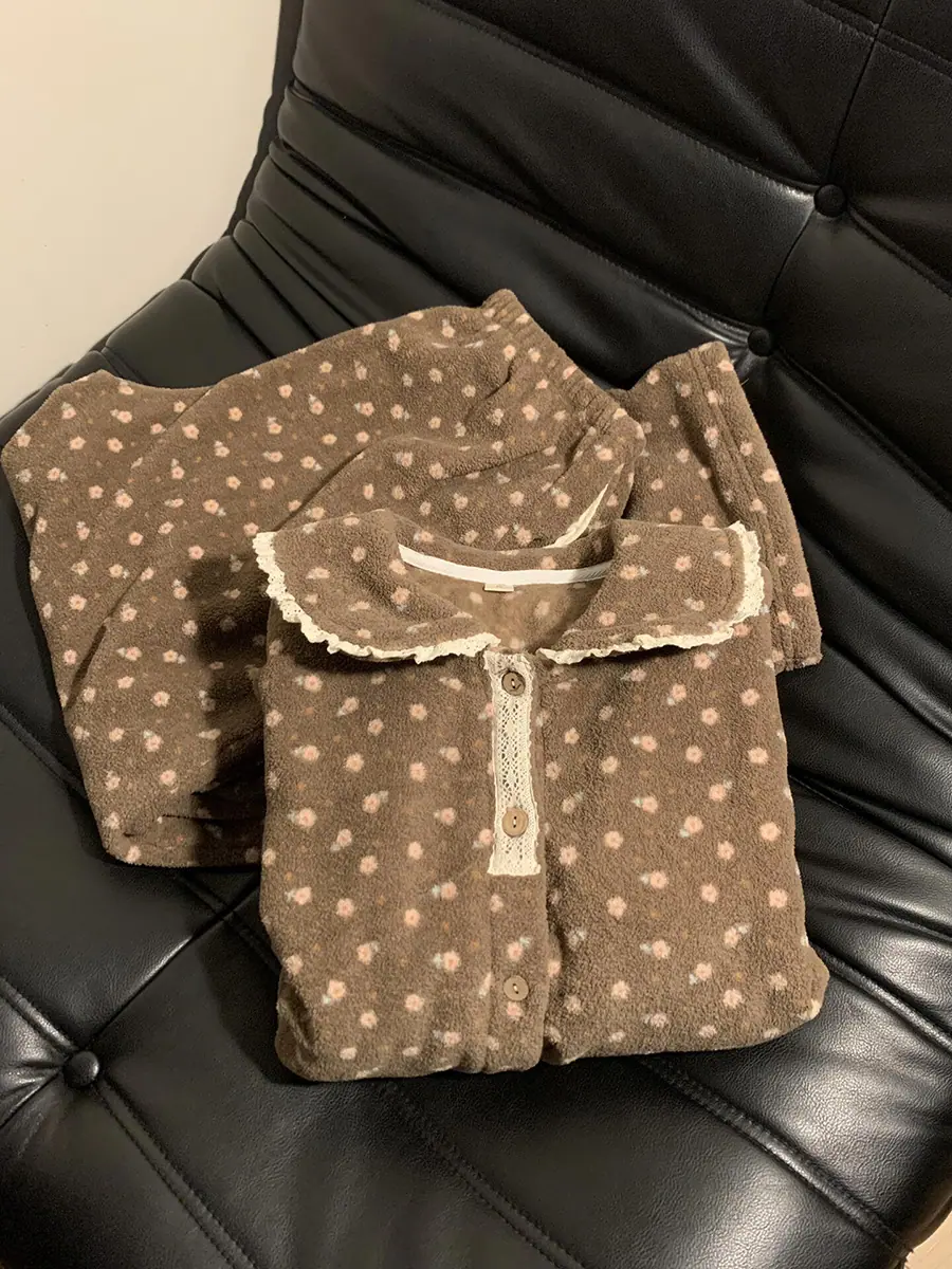 Pijama de franela floral estilo coreano para niña, estilo otoño e invierno para mujer, cómodo conjunto de ropa para el hogar de manga larga y pantalón largo que se puede usar en exteriores