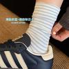 Calcetines holgados de primavera y otoño para mujer, calcetines de media pantorrilla, estilo japonés, color azul Ins, bloques de color, a rayas, no de algodón, calcetines largos de otoño