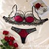 Conjunto de Lencería Sexy Ultra Fino Transfronterizo Popular Europeo y Americano Encaje Puro Deseo Sujetador con Aro de Acero 166
