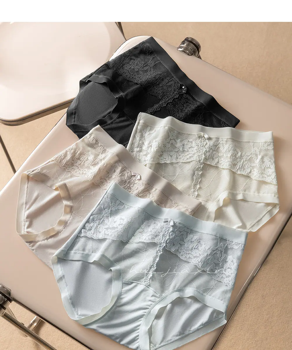 Nuevas Bragas Jacquard de Lujo Ligero Francés Modal 80s Sin Costuras para Mujer 10A Antibacterianas de Cintura Alta con Encaje de Moldeado Ligero